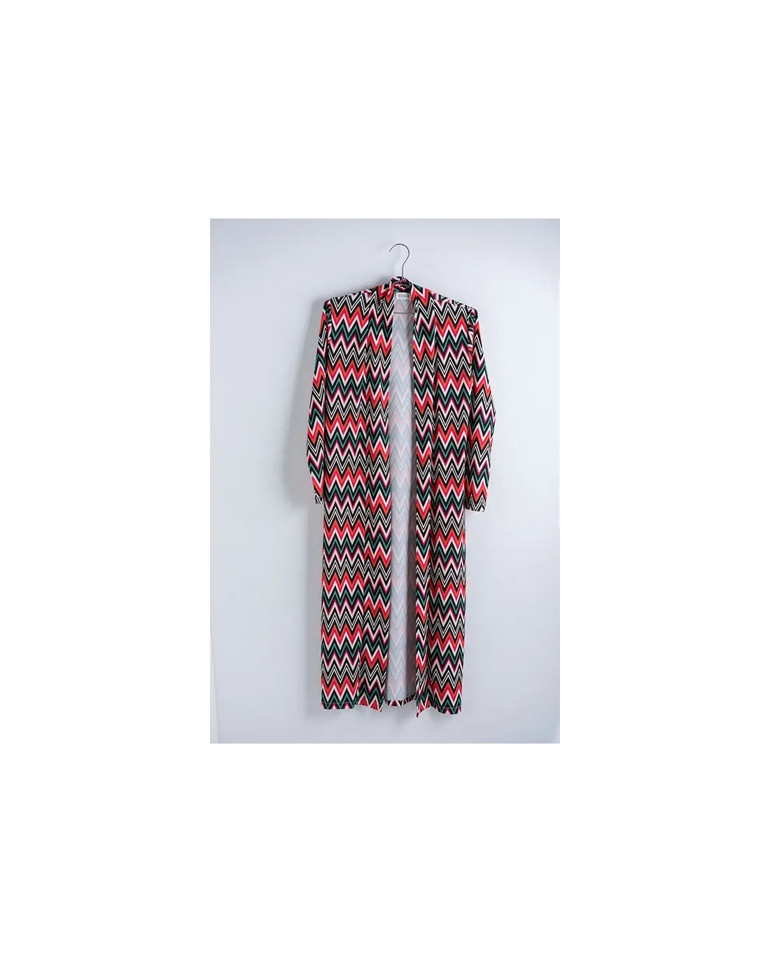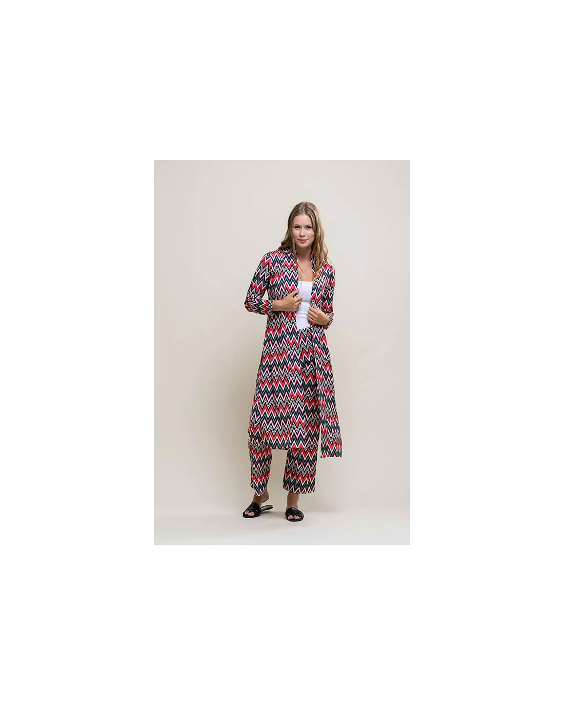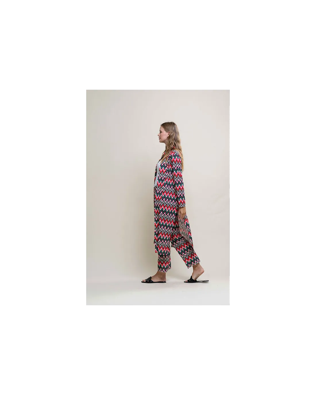 kaftán geométrico confeccionado en un ligero tejido con manga ranglán, bolsillos laterales y aberturas en los laterales.