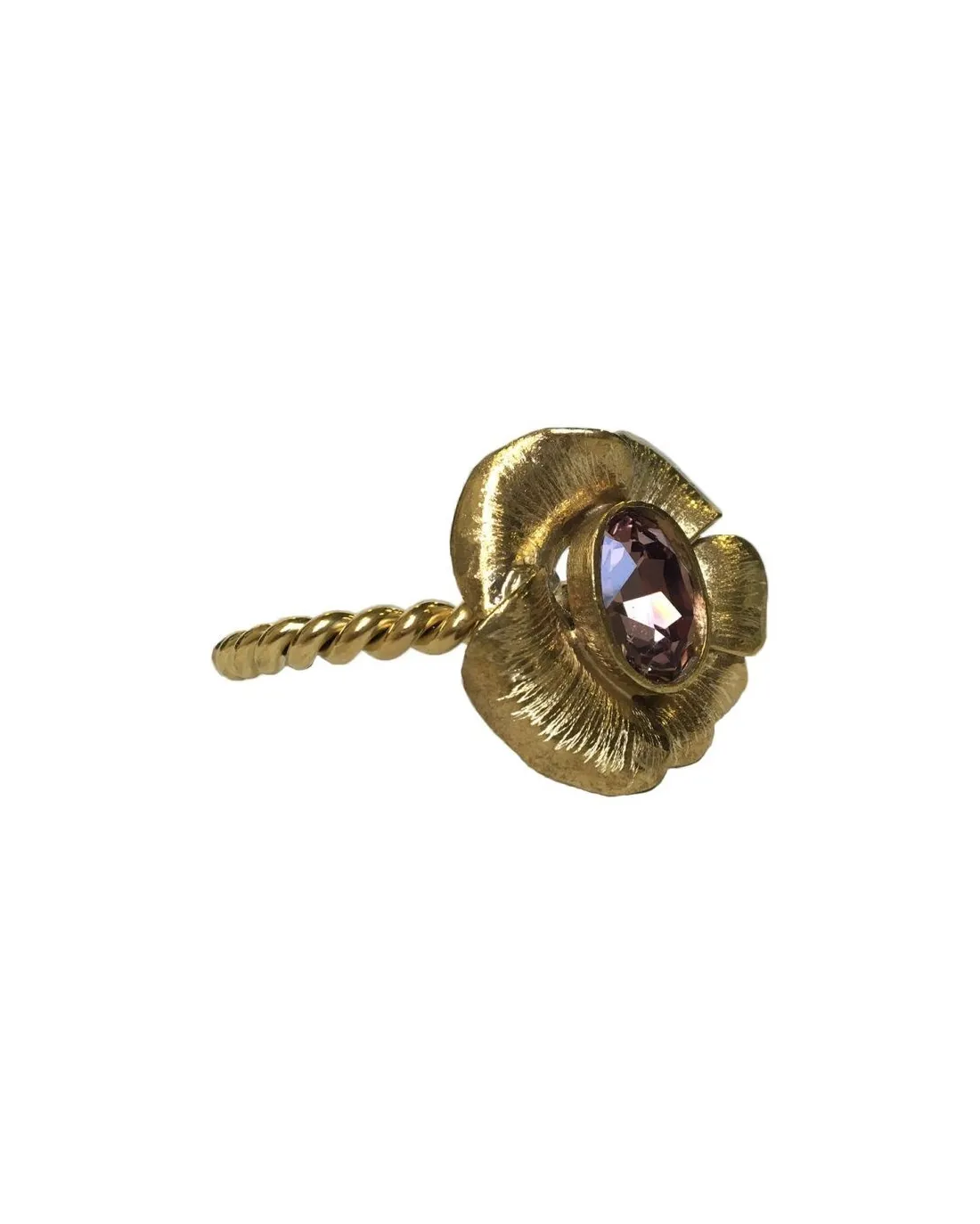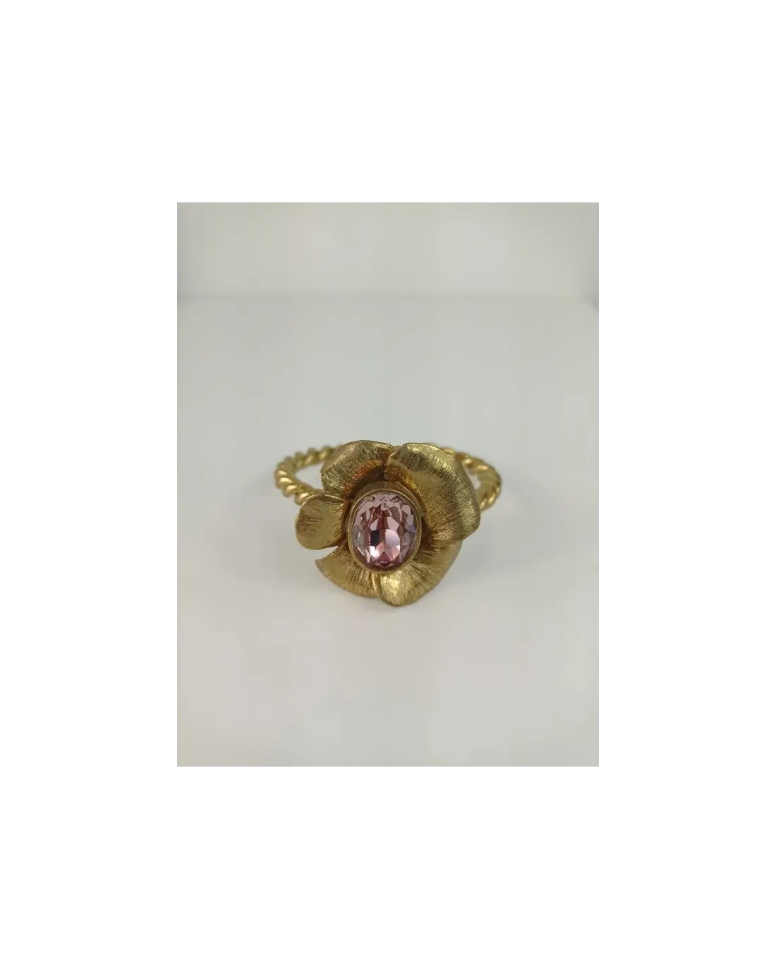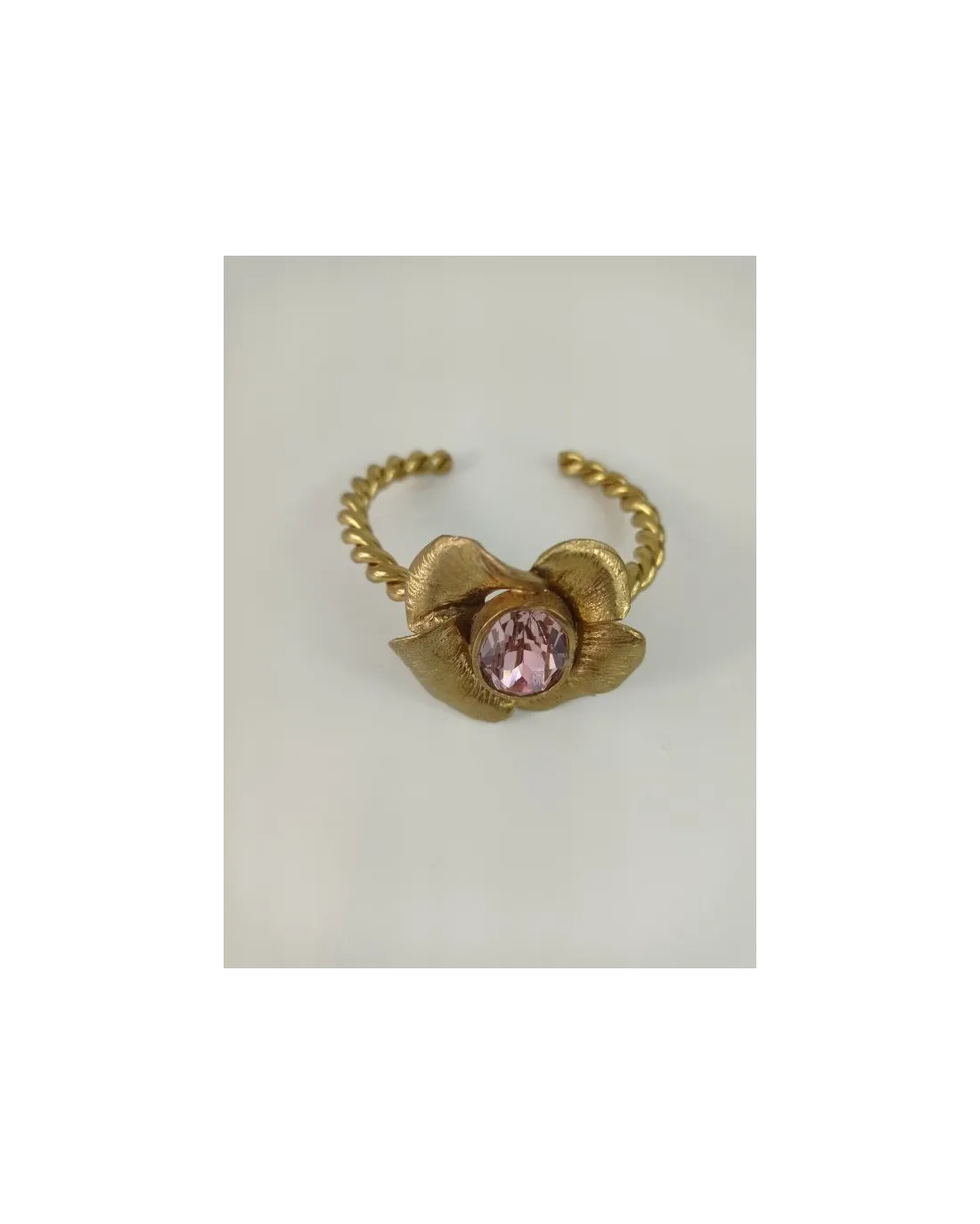 Pulsera de latón con una preciosa piedra en tono rosa de cuarzo.