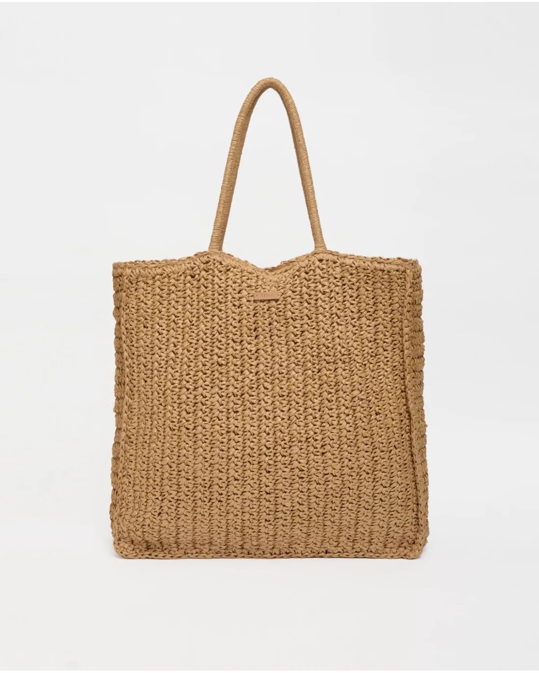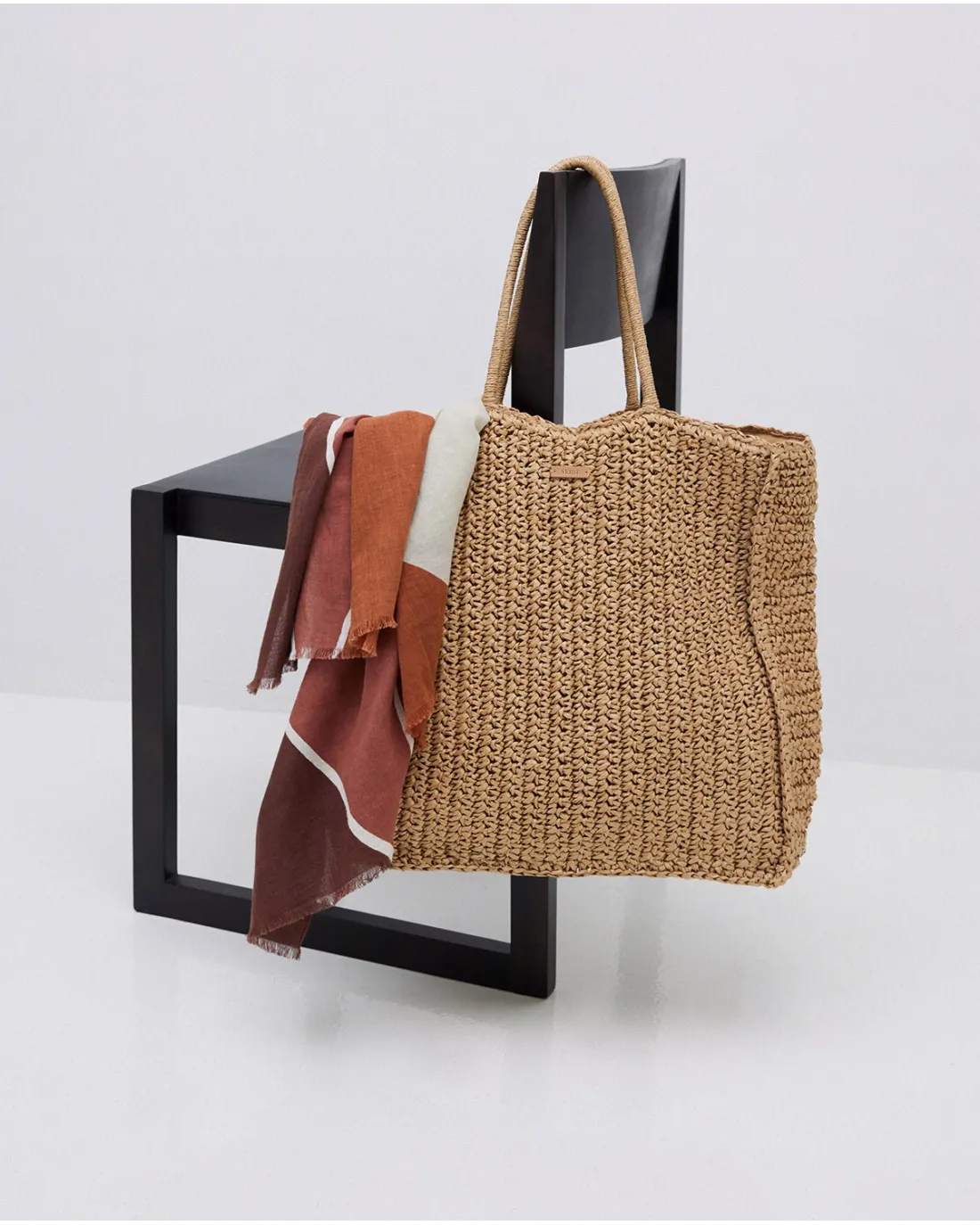 Bolso shopper de rafia natural con asas, forro en el interior y cierre de cremallera.