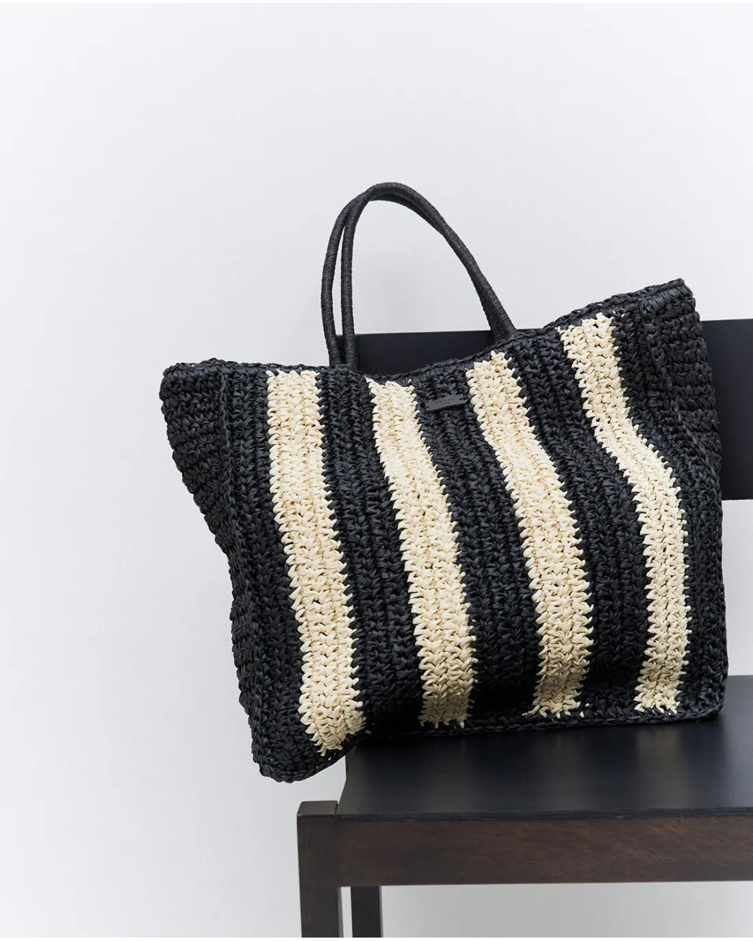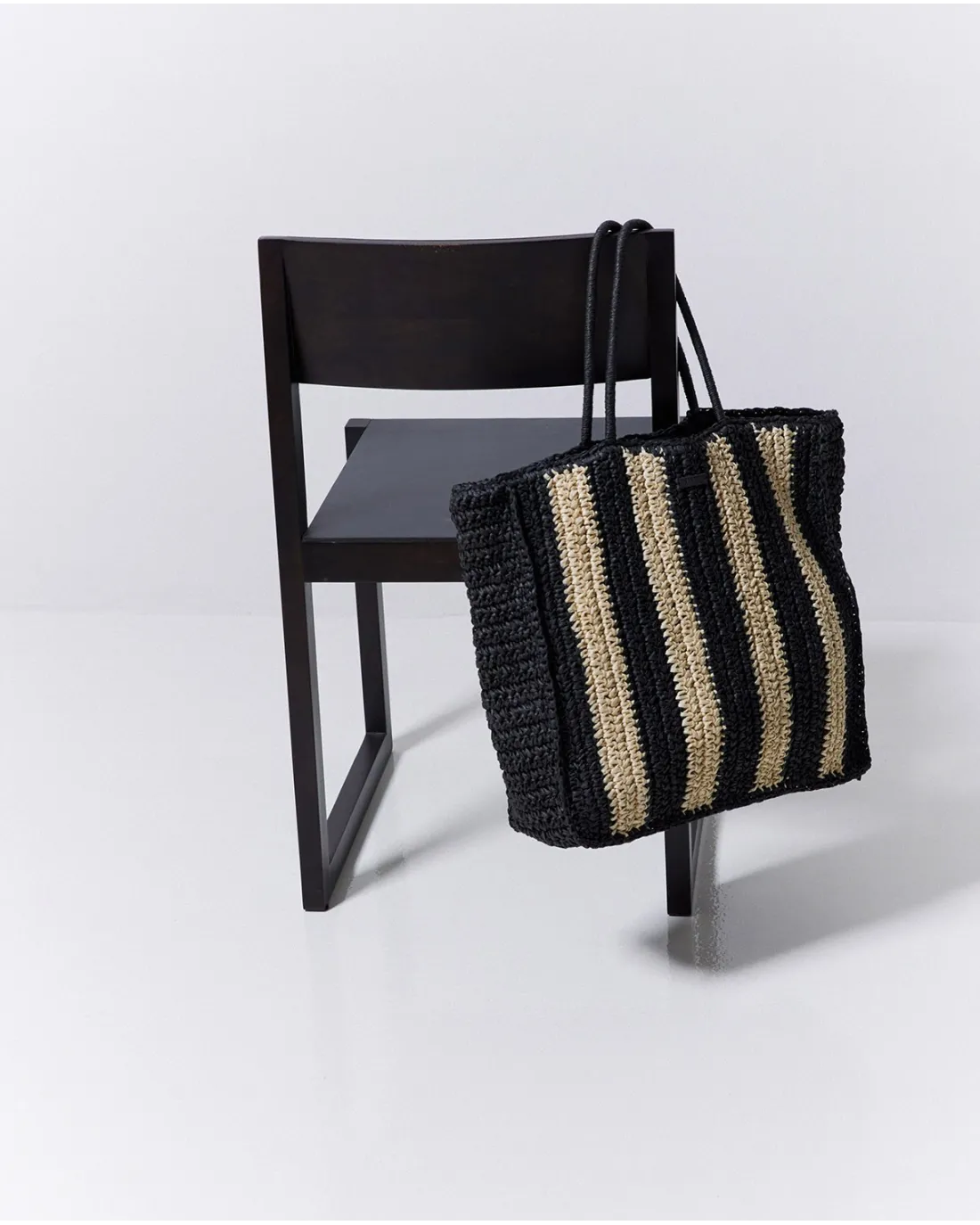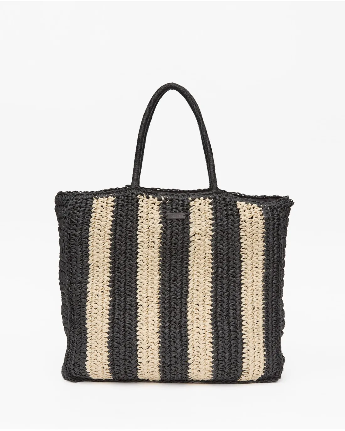 Bolso shopper de rafia natural con asas, forro en el interior y cierre de cremallera.