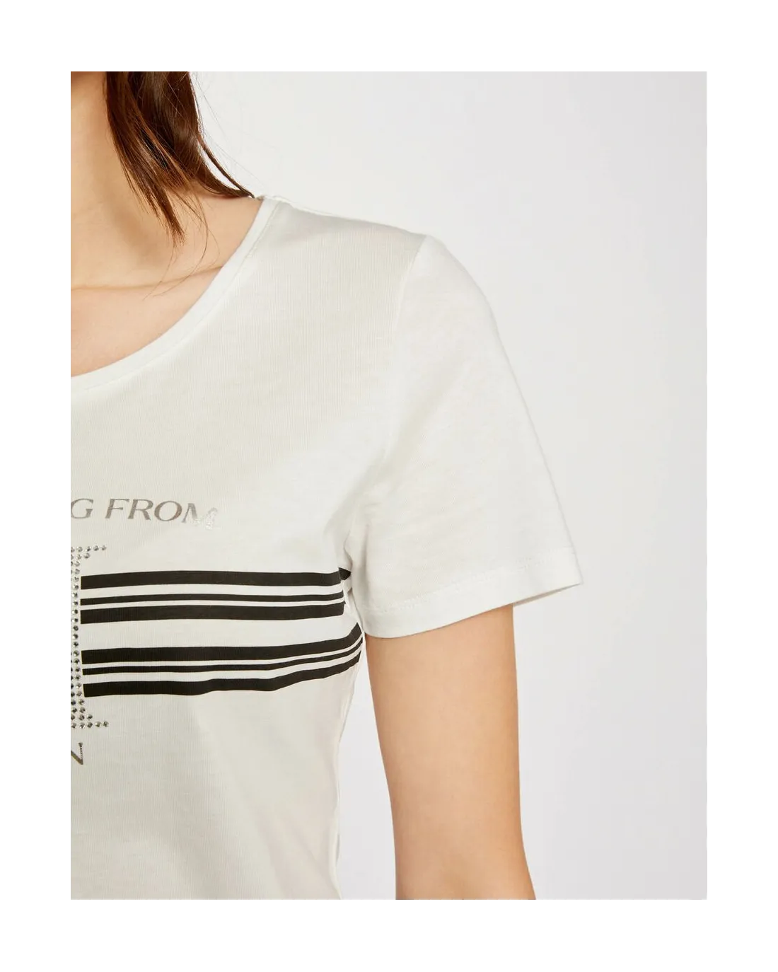 Camiseta con Strass Morgan Camiseta de manga corta y cuello redondo con strass en el cuello y mensaje  Rebel Chic Paris en la parte delantera. Colección Morgan Color: crudo.