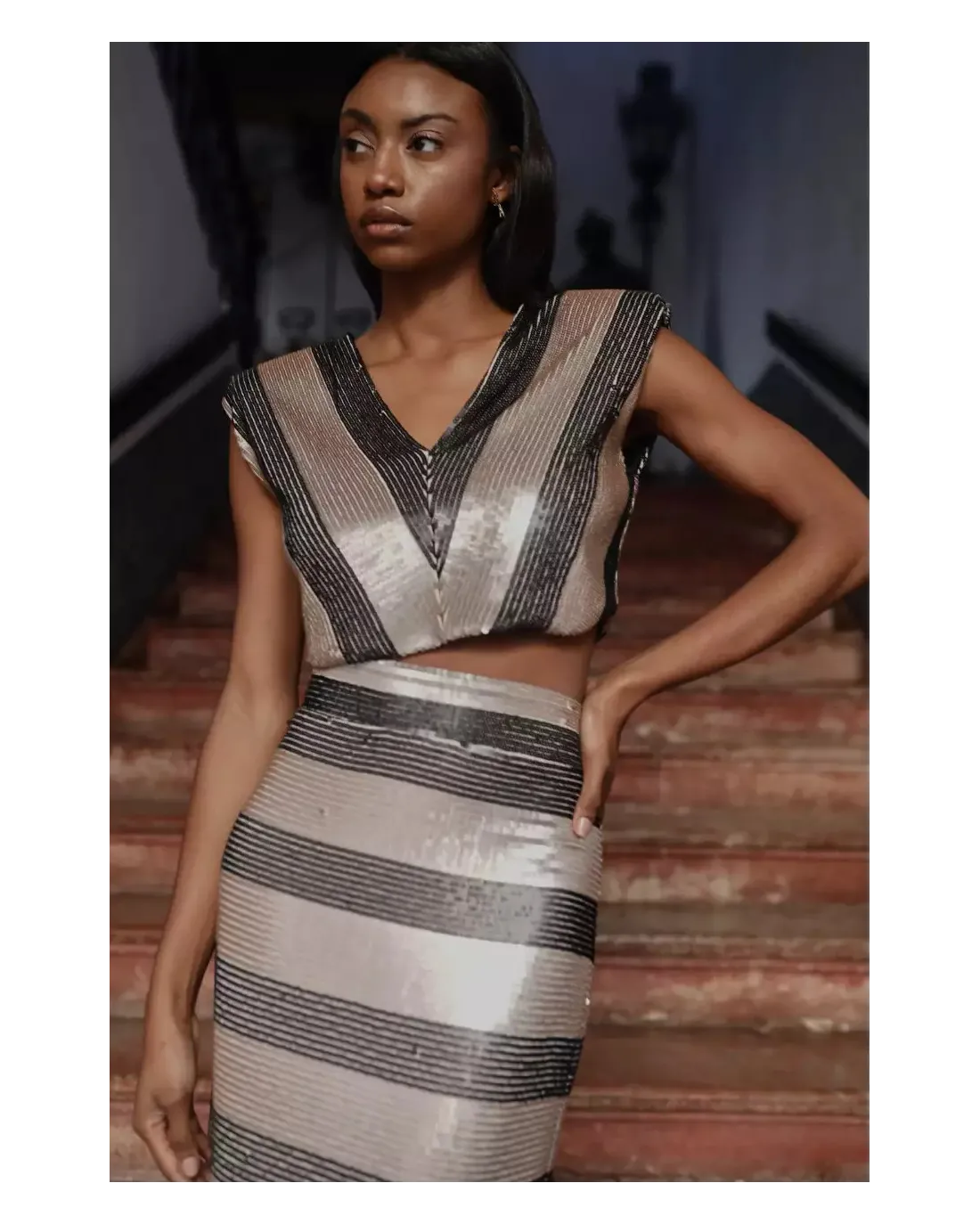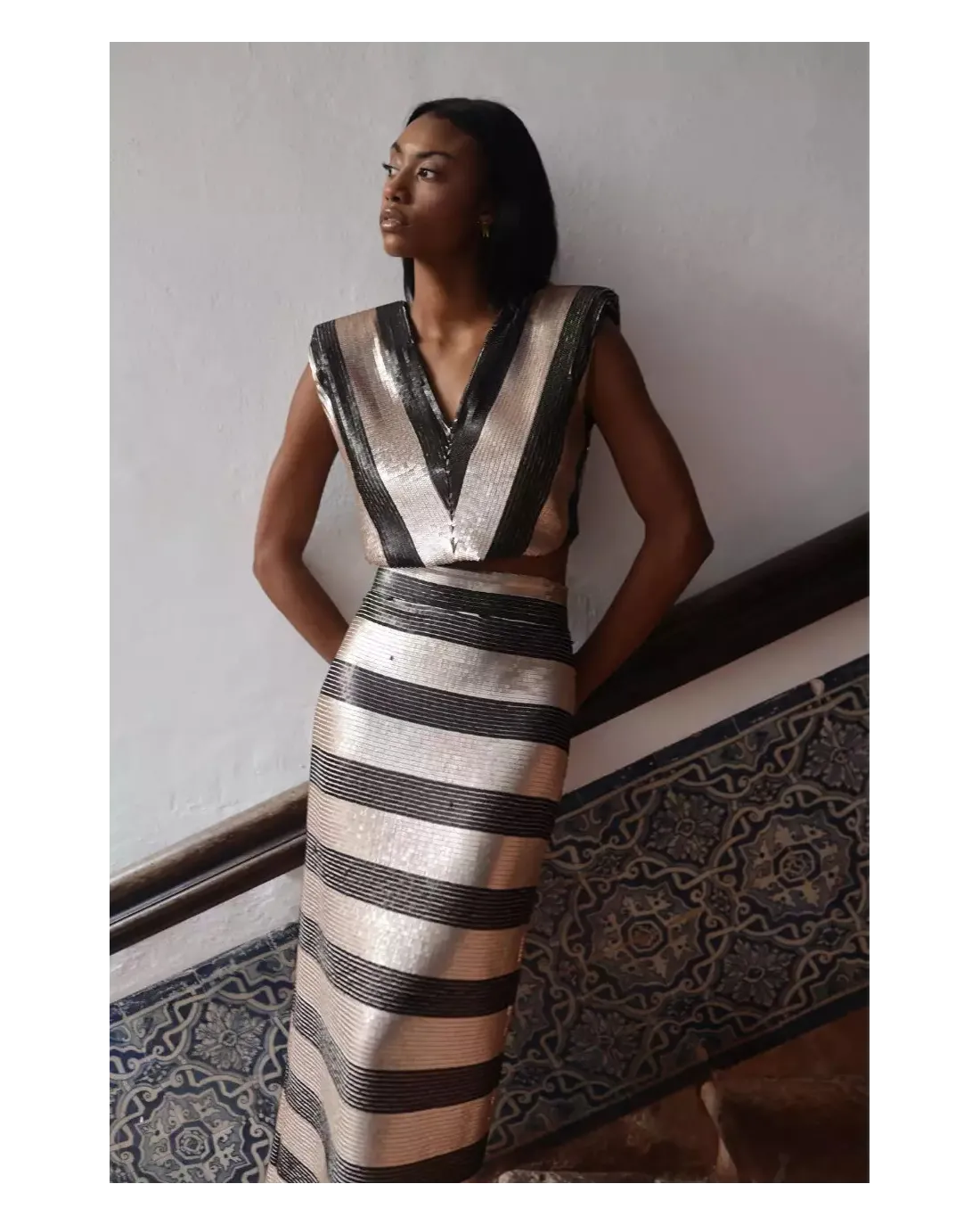 Falda de Lentejuelas Panambi Falda larga de corte entubado confeccionada en lentejuelas, con cinturilla y cierre de cremallera trasera invisible. Colección Panambi Color: único.