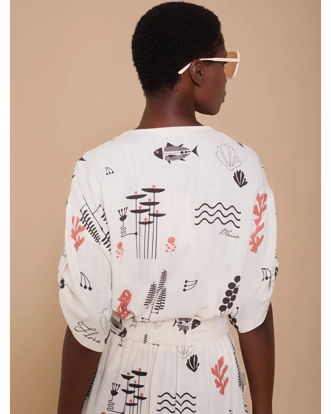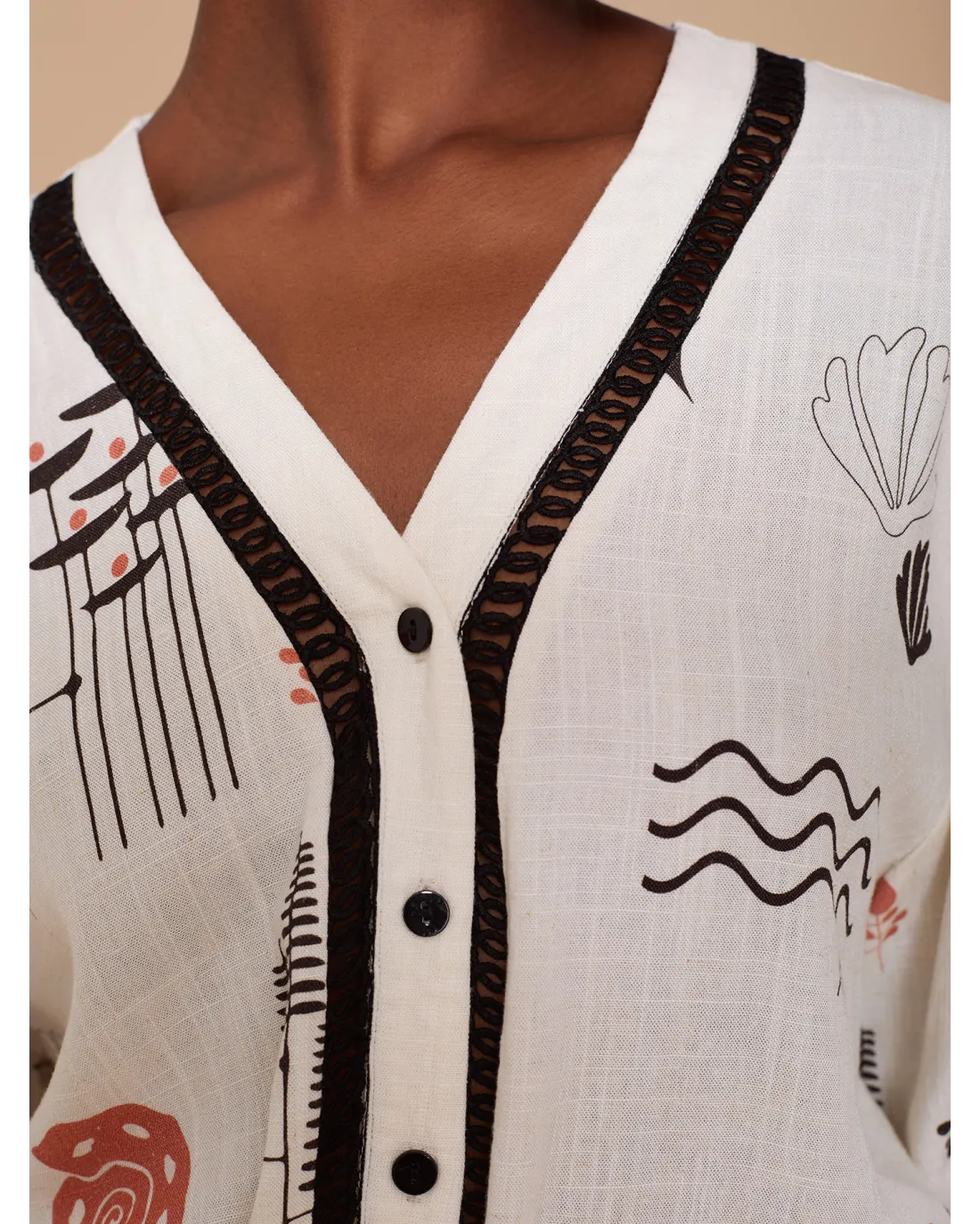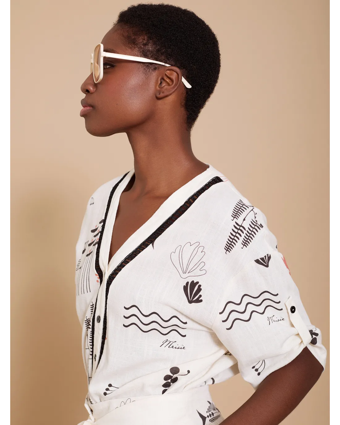 Falda de largo midi, estampada con cinturilla y lazada y cierre de botones centrales. Ideal para combinar con camisa M99B05IVY.