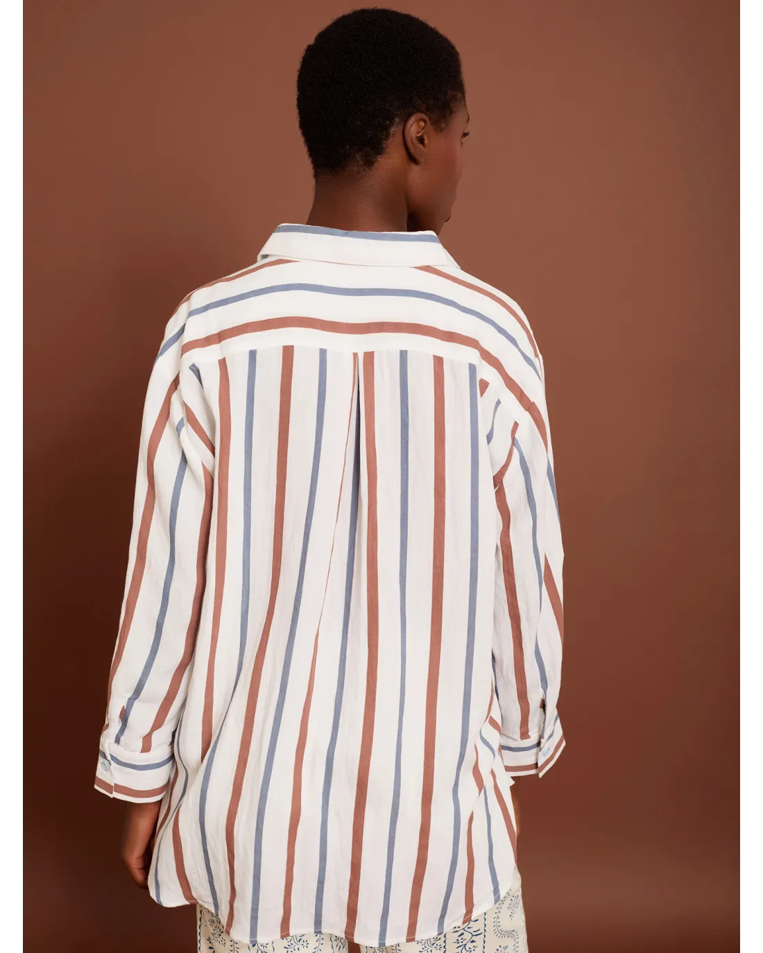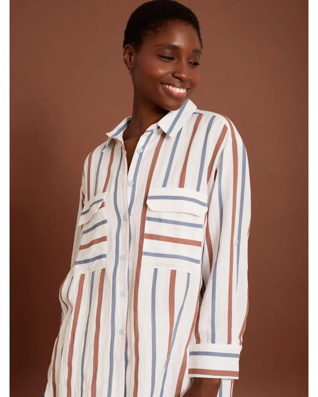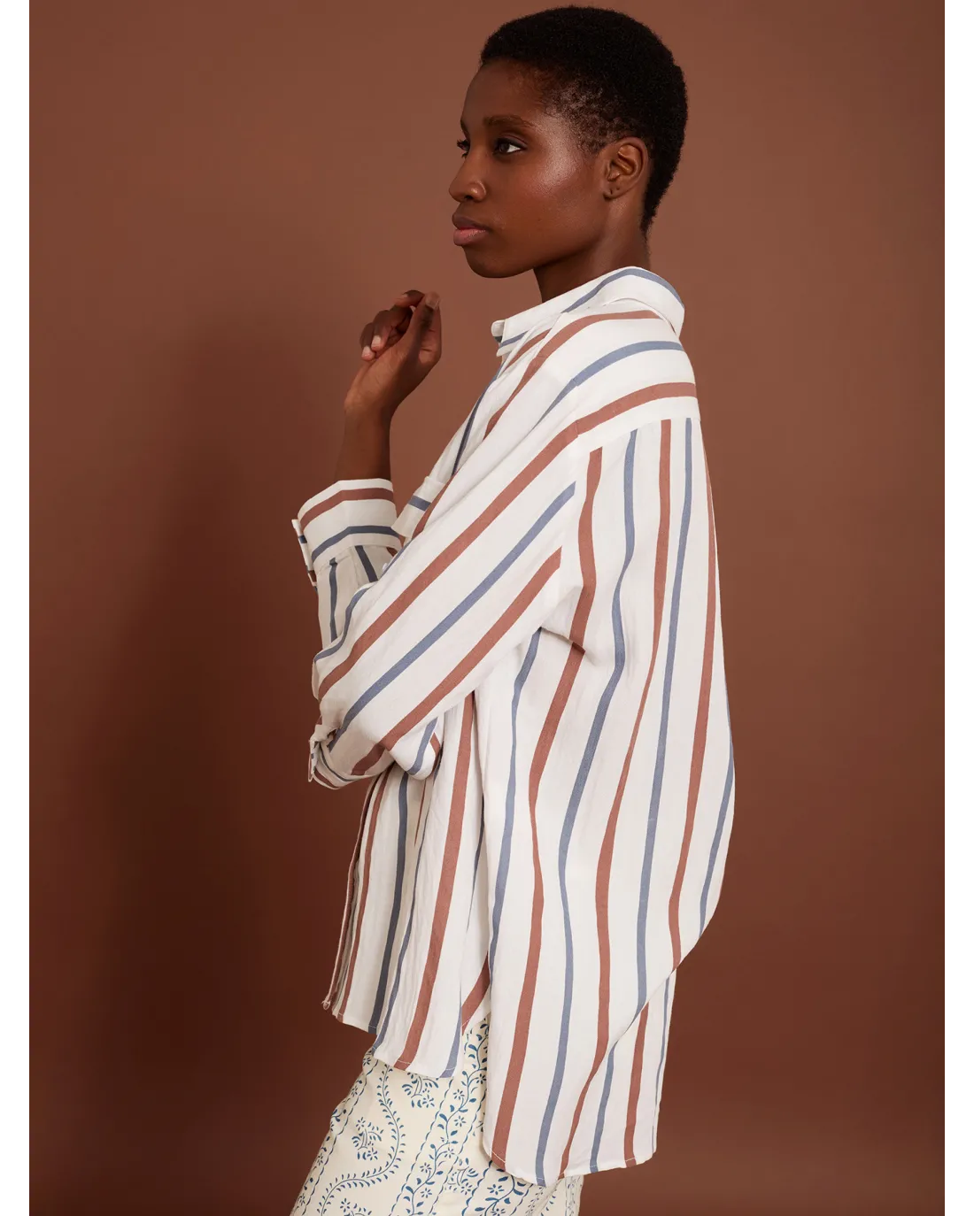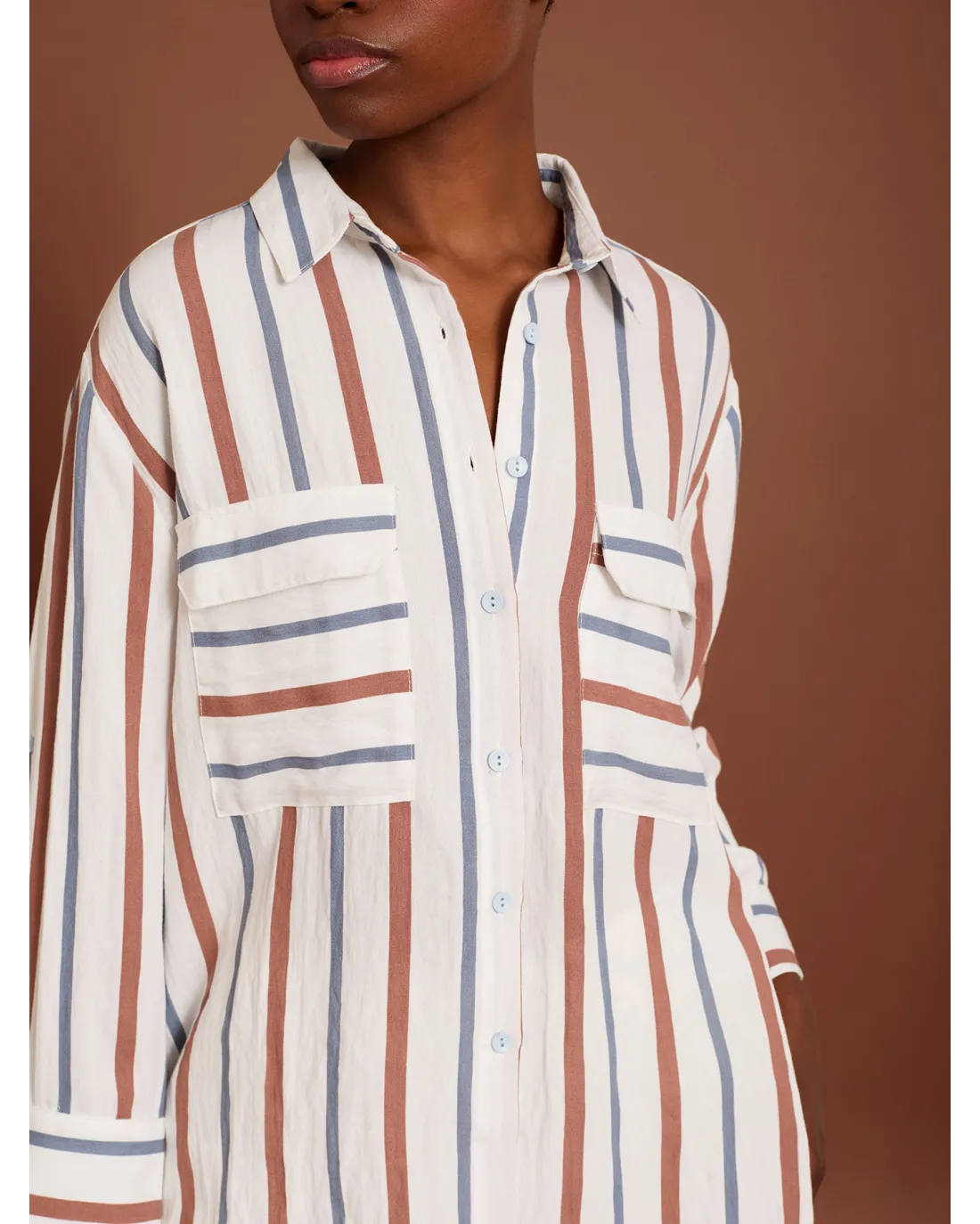 Camisa estampada con manga corta ranglan, escote en V con aplique a contraste. Perfecta para combinar con falda M99F05IVY.