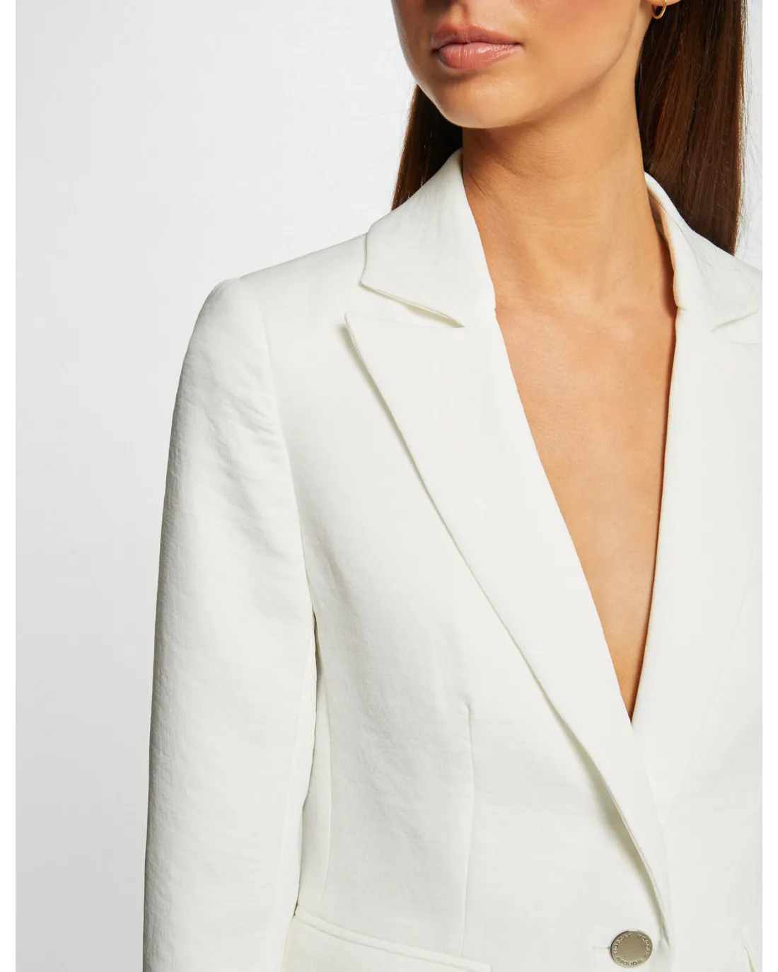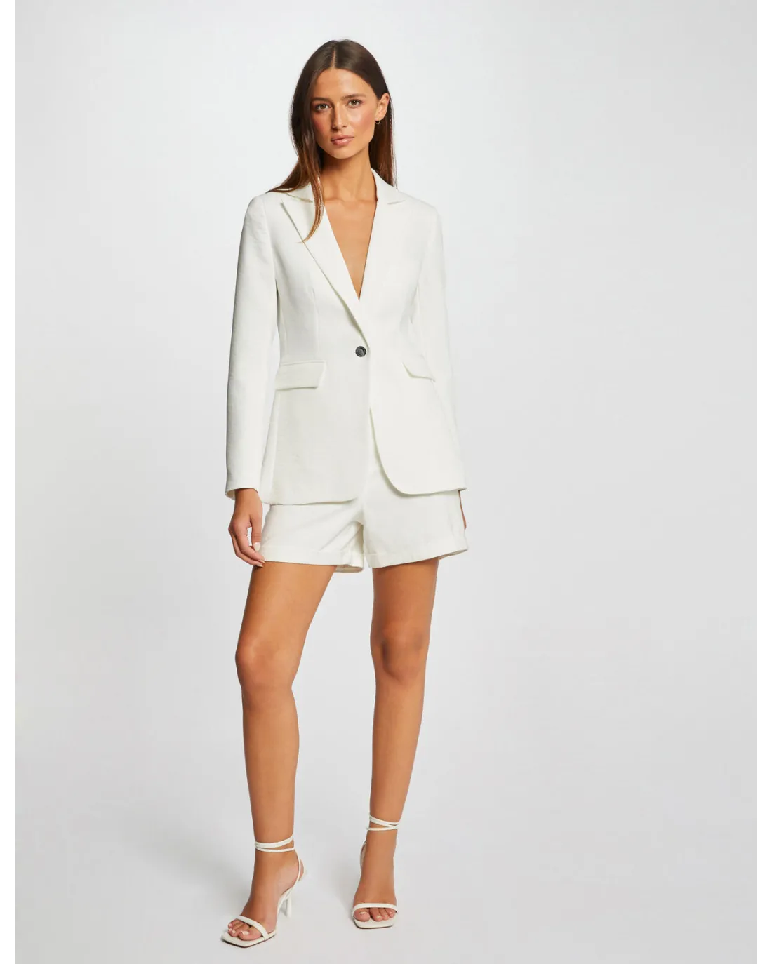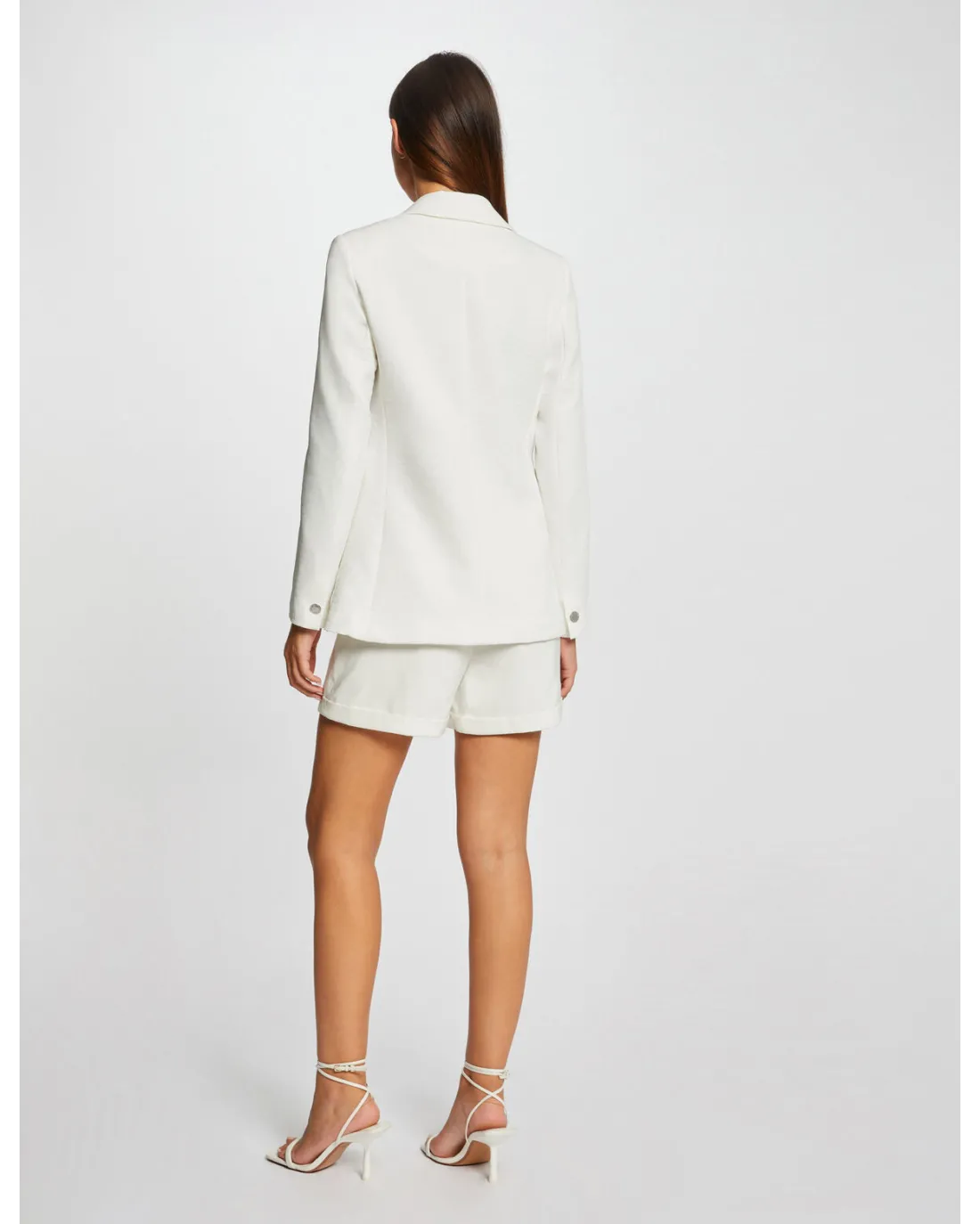 Chaqueta corta efecto antelina de manga larga con cuello de solapas y detalles de cremallera en el pecho con cierre de cremallera central.