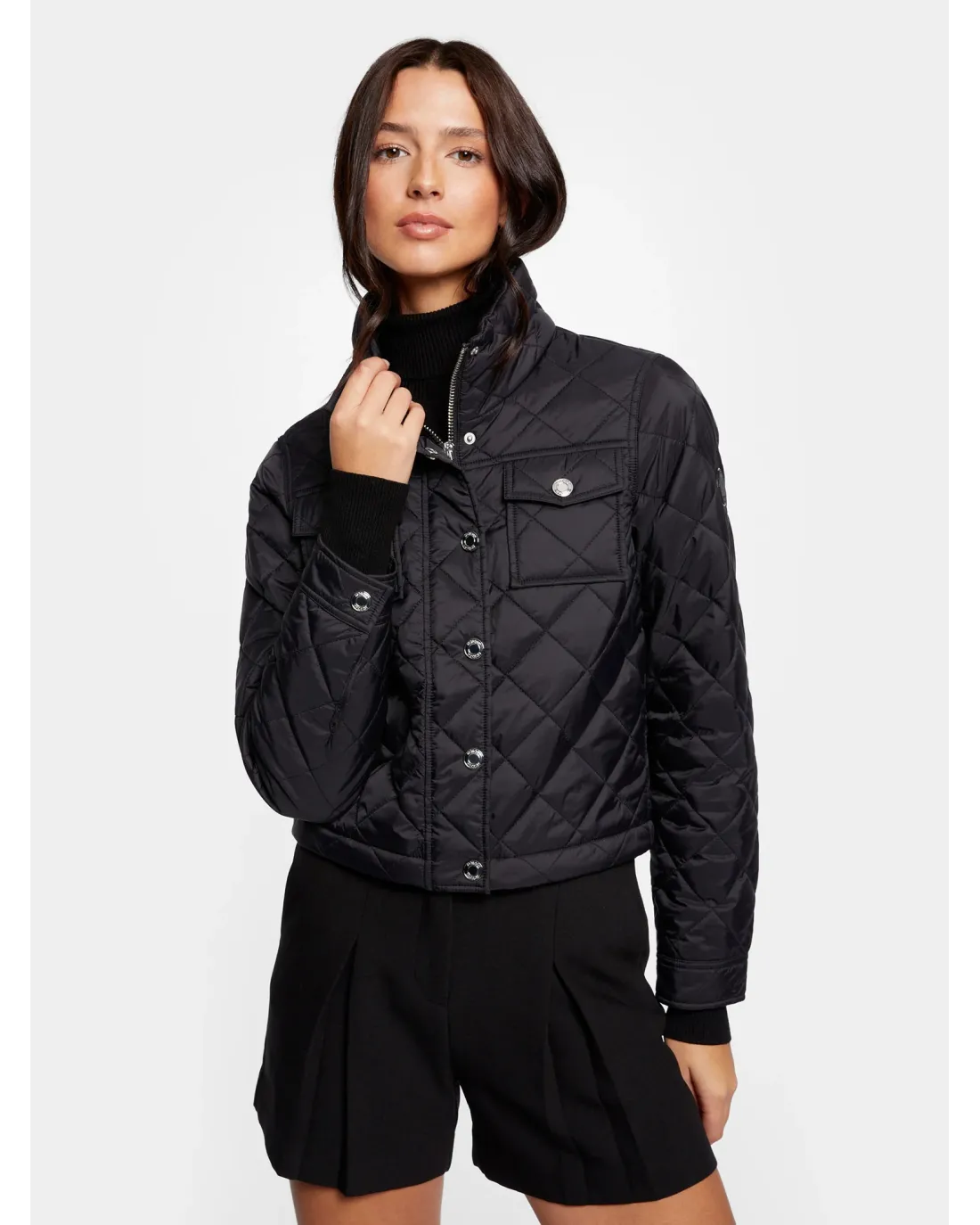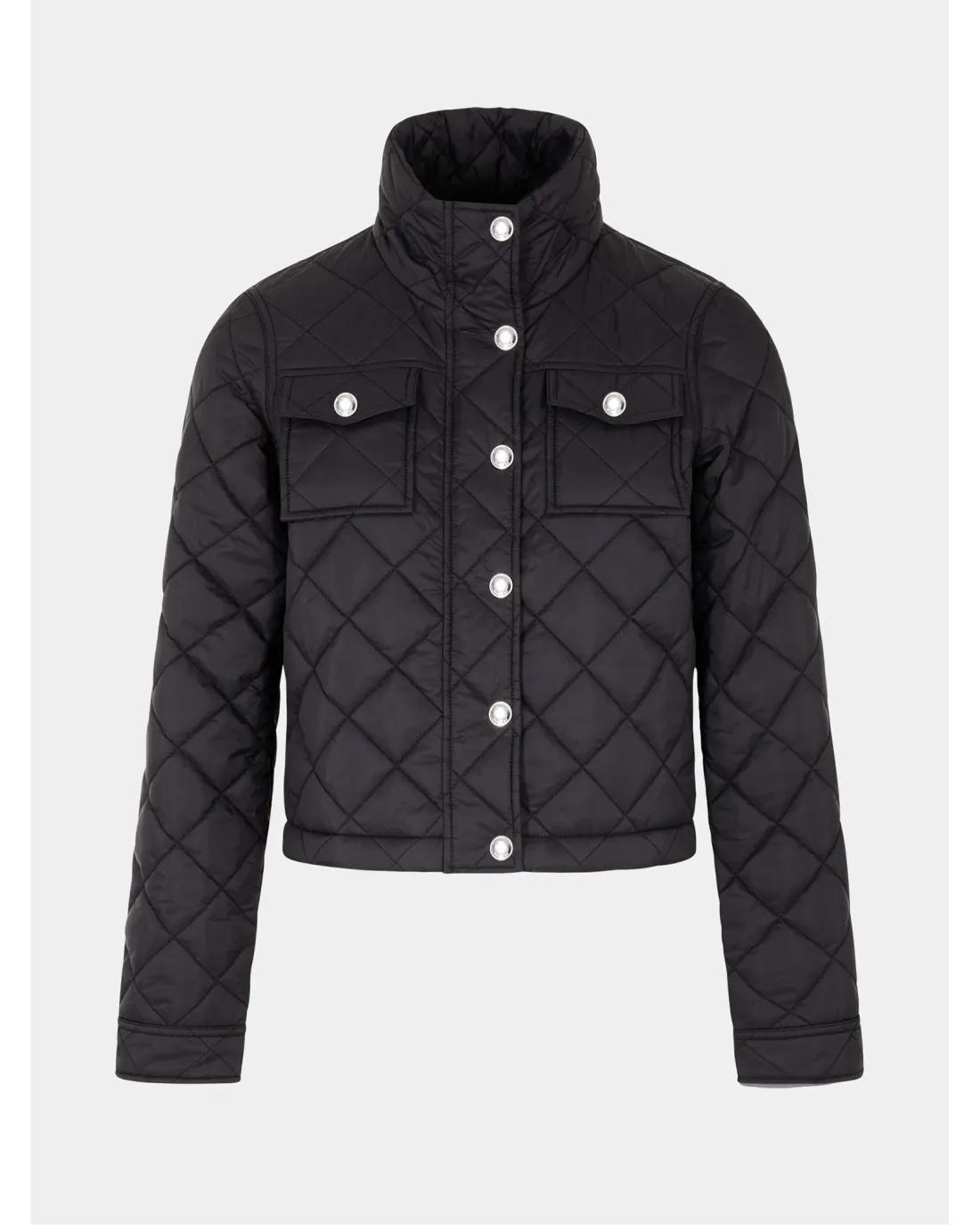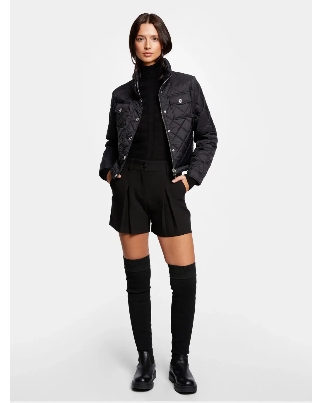 Chaqueta corta con efecto antelina, manga larga, cuello con muescas y cierre de cremallera lateral.