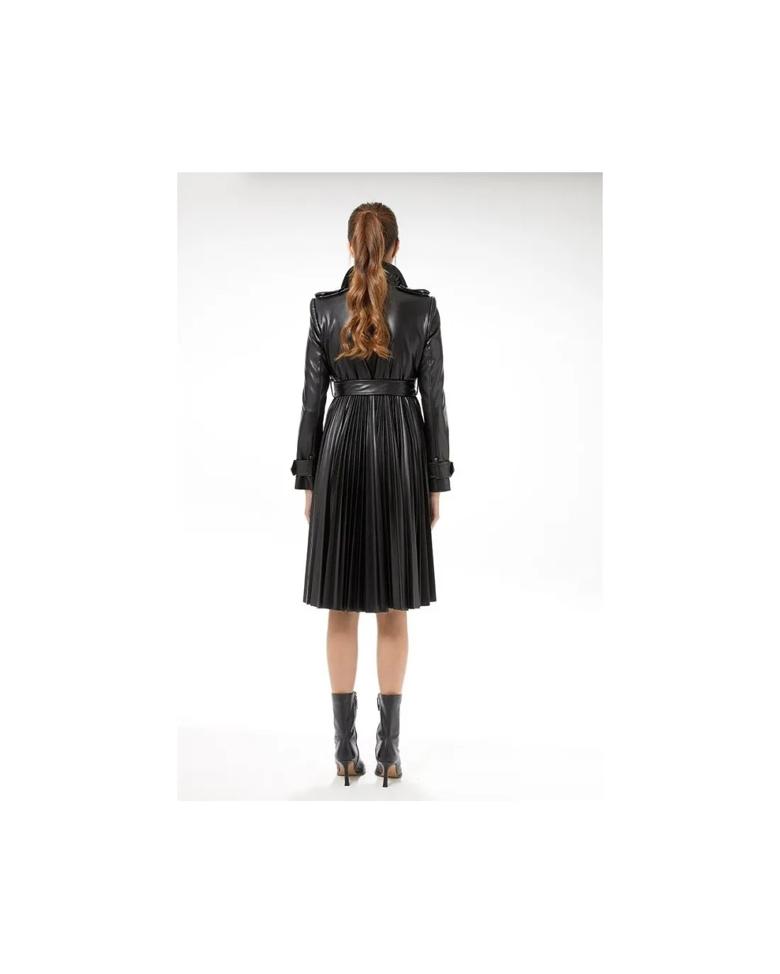 Gabardina cruzada efecto repelente al agua con cuello camisero, manga larga y doble botonadura con lazada.