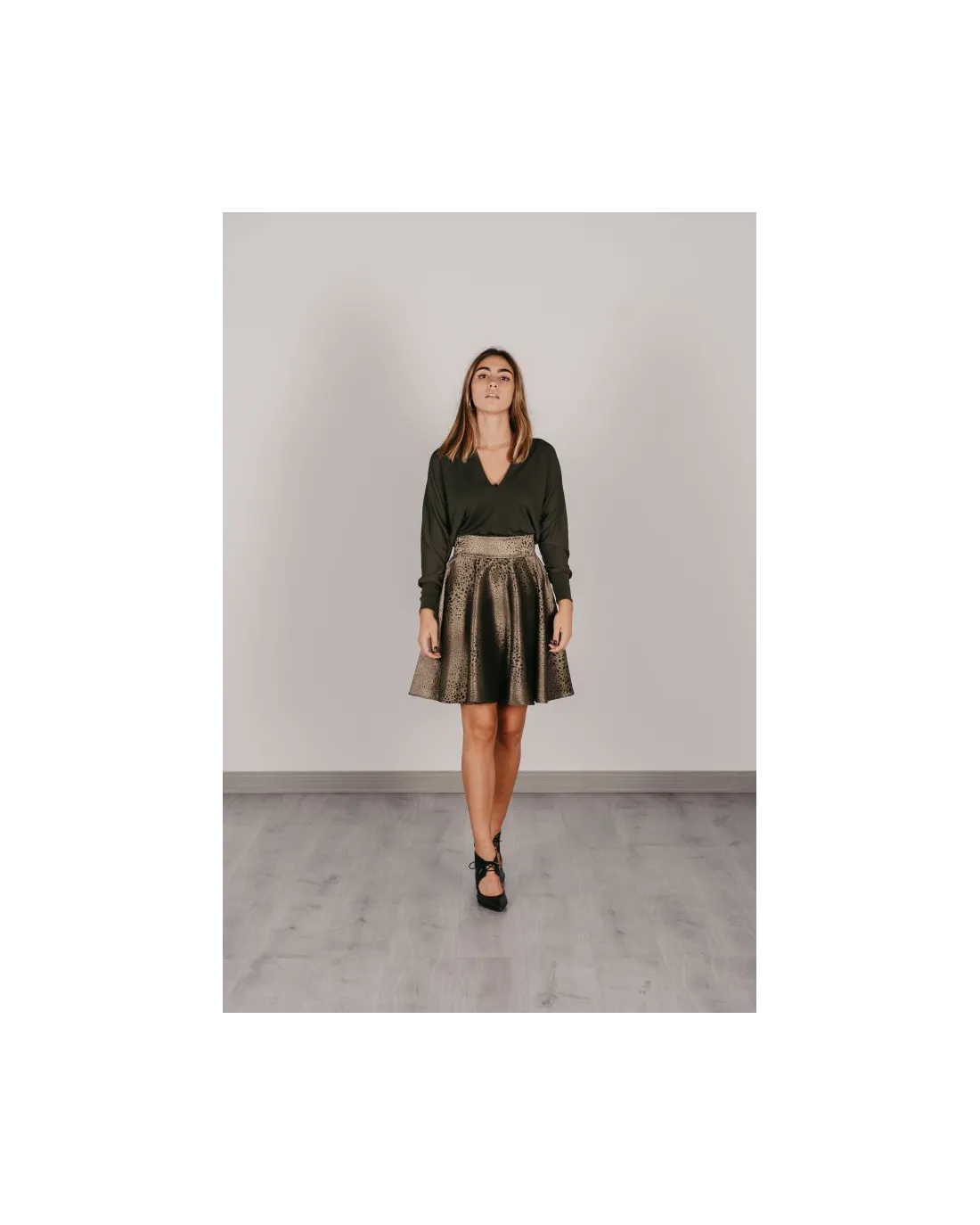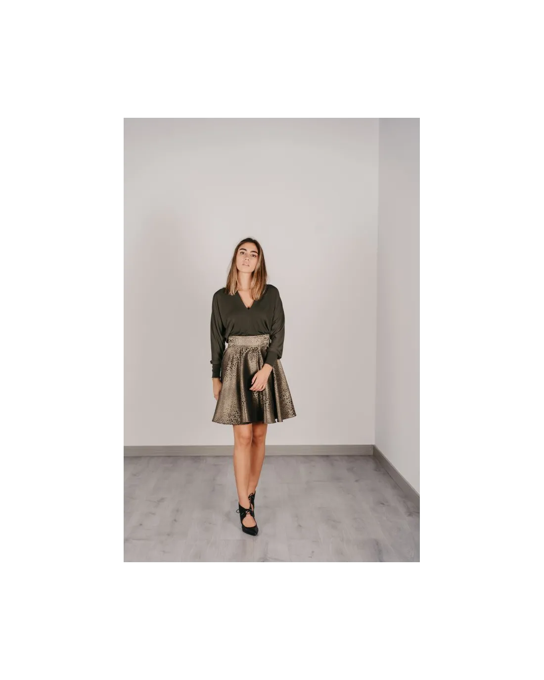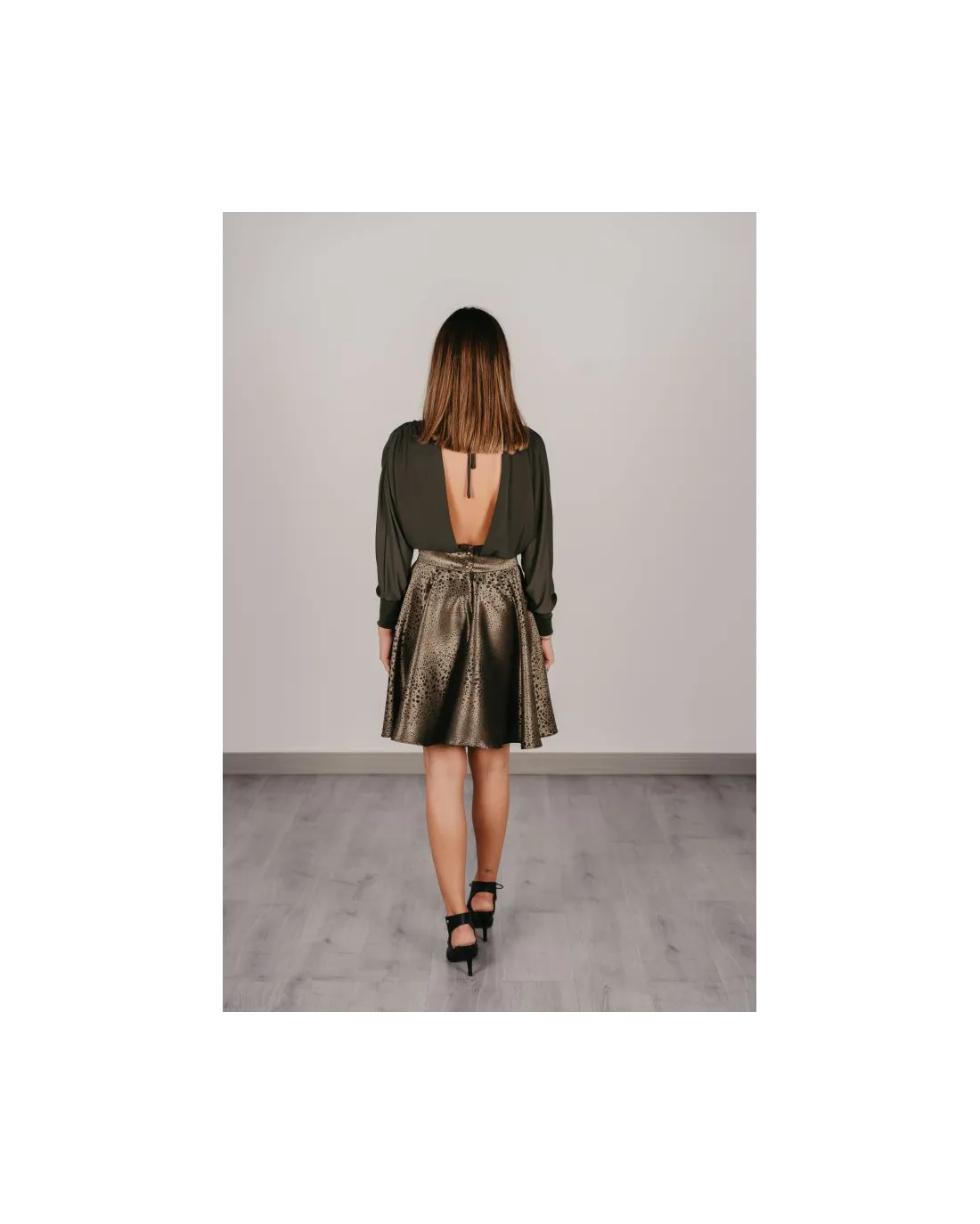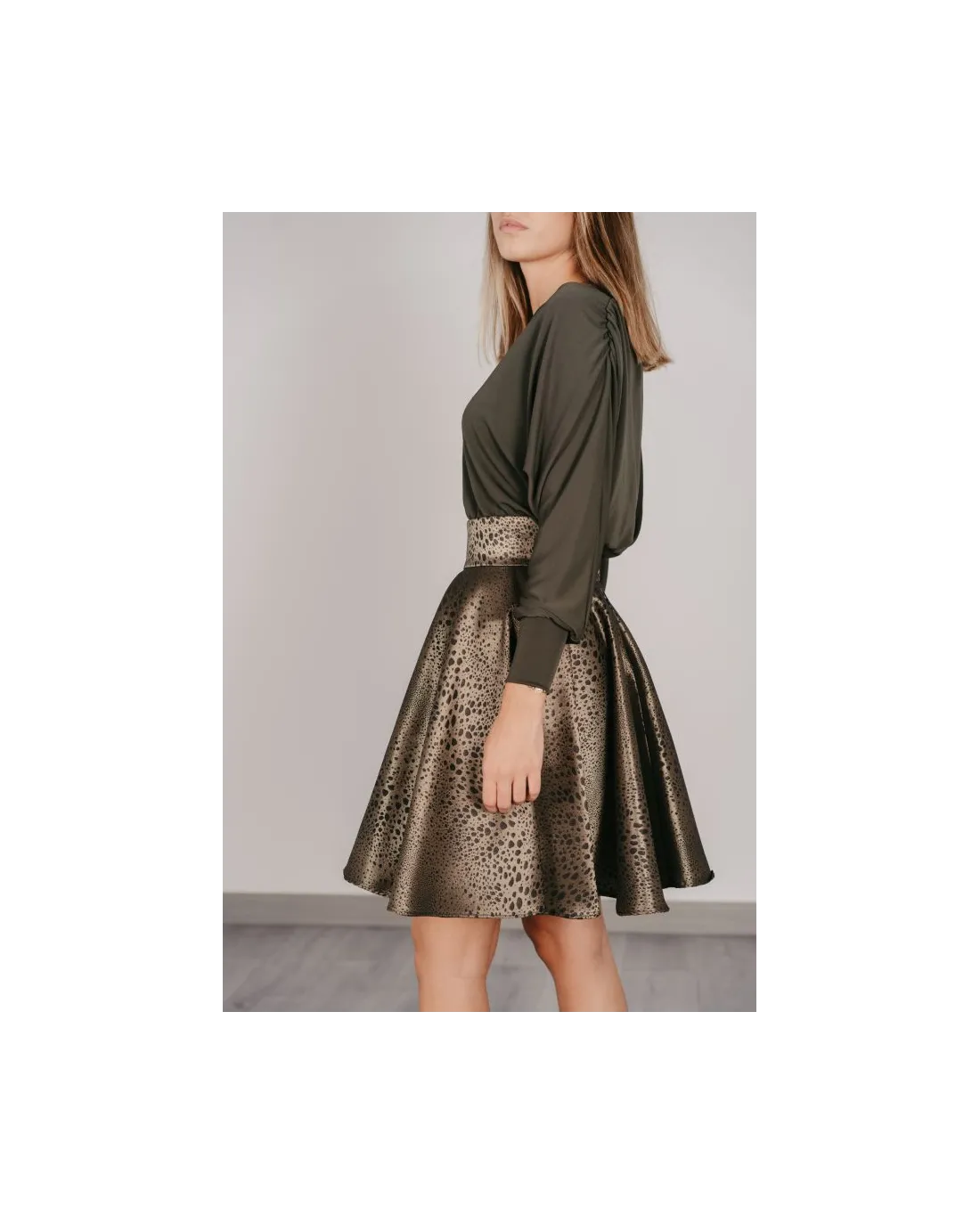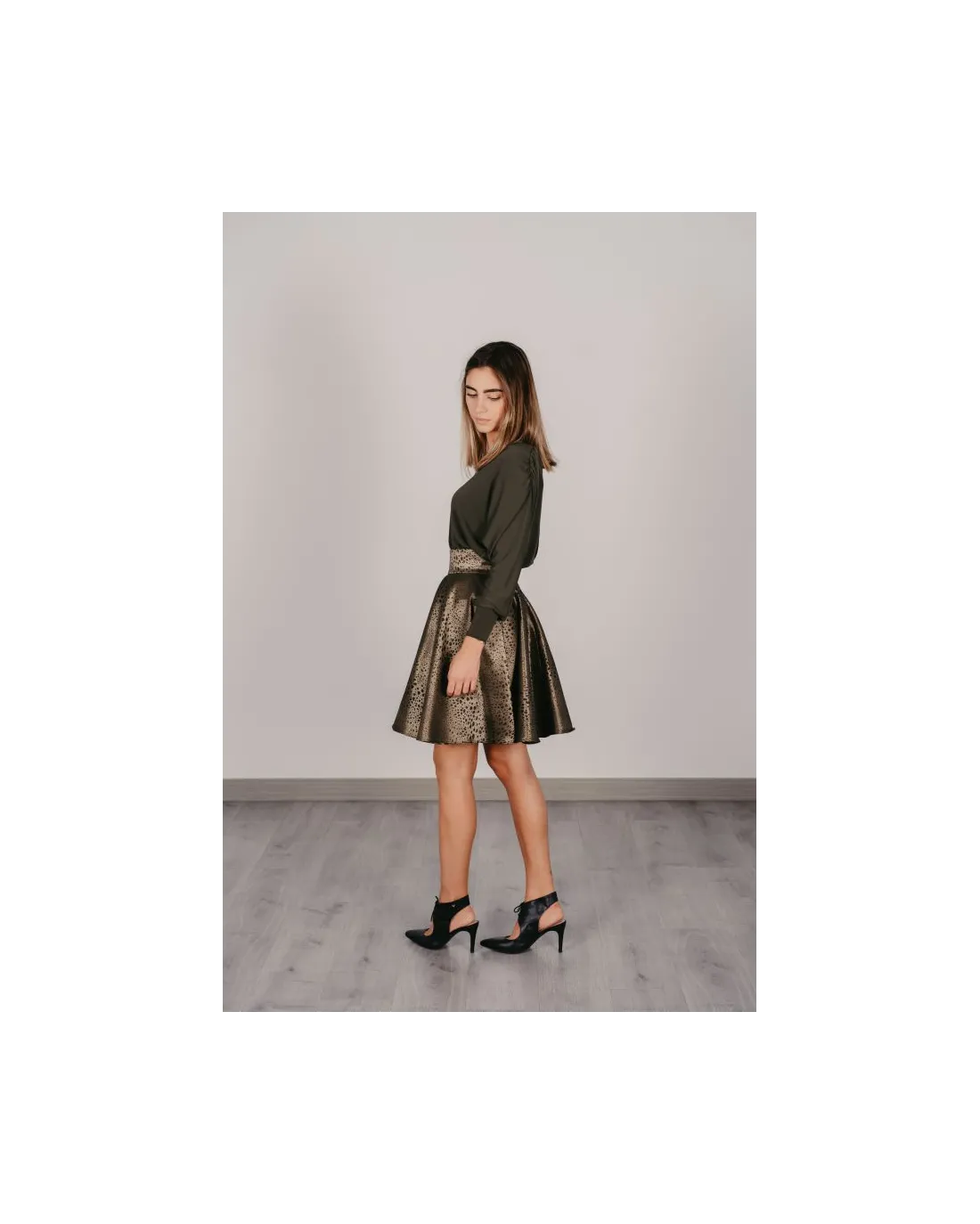 Vestido blazer corto en monocolor con manga larga y hombreras marcadas, está confeccionado en un tejido jacquard y su cierre es con botones dorados.