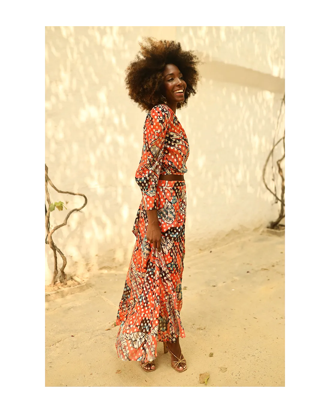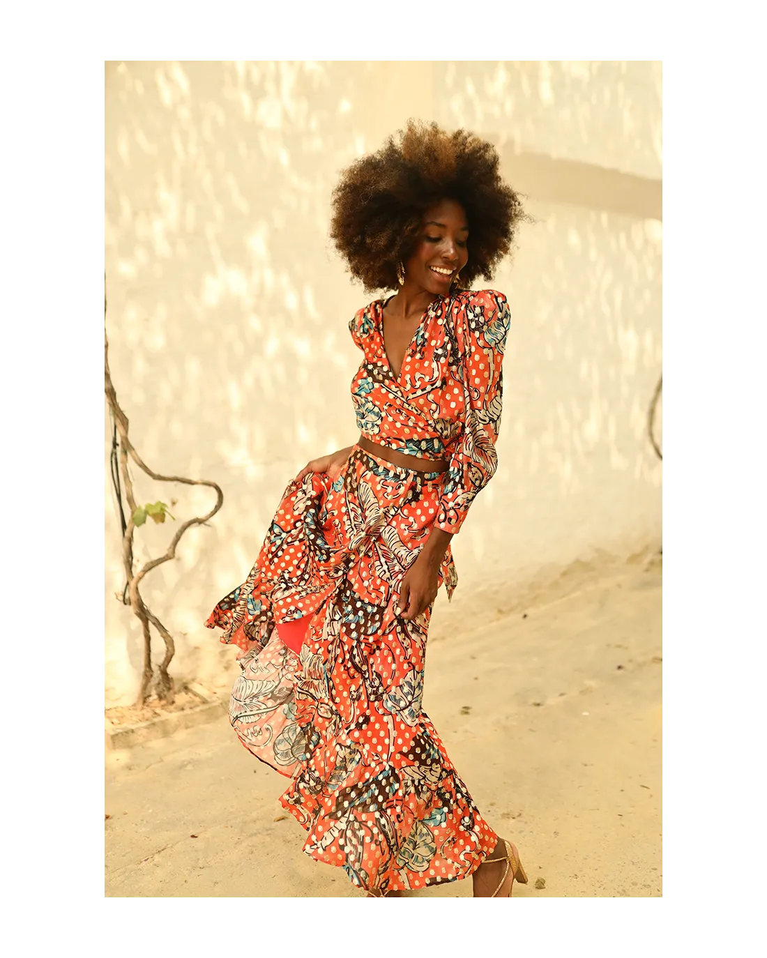 Falda de largo midi y talle alto confeccionada en jacquard de algodón con rayas a contraste y cinturilla con cierre de cremallera invisible trasera. Perfecta para combinar con camisa SUA