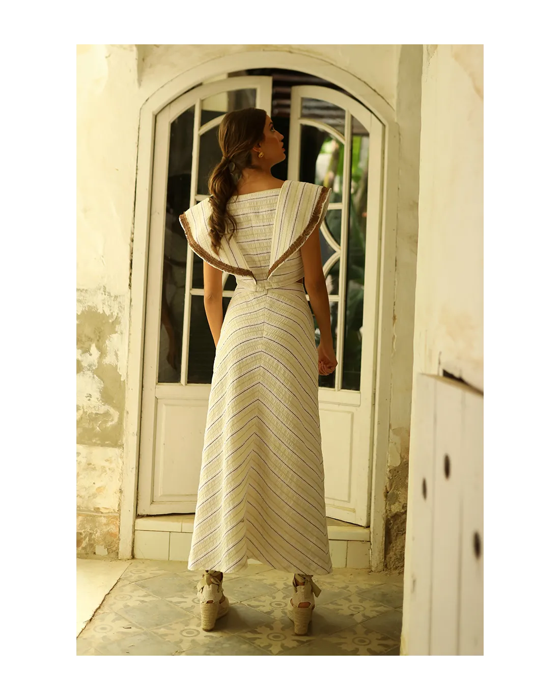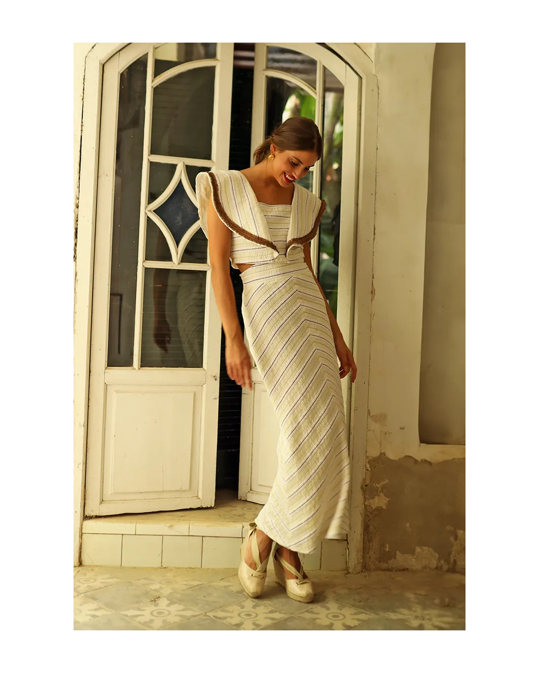 Falda de largo midi y talle alto confeccionada en jacquard de algodón con rayas a contraste y cinturilla con cierre de cremallera invisible trasera. Perfecta para combinar con camisa SUA