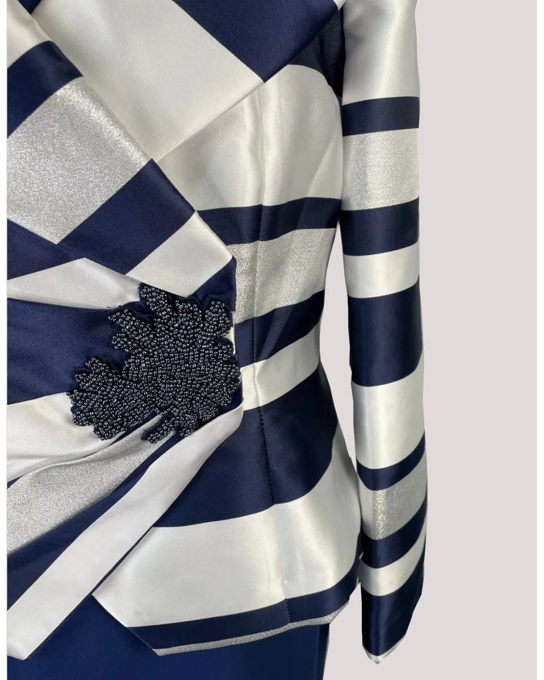 Conjunto de Vestido y Chaqueta de Rayas Horizontales Carla Ruiz