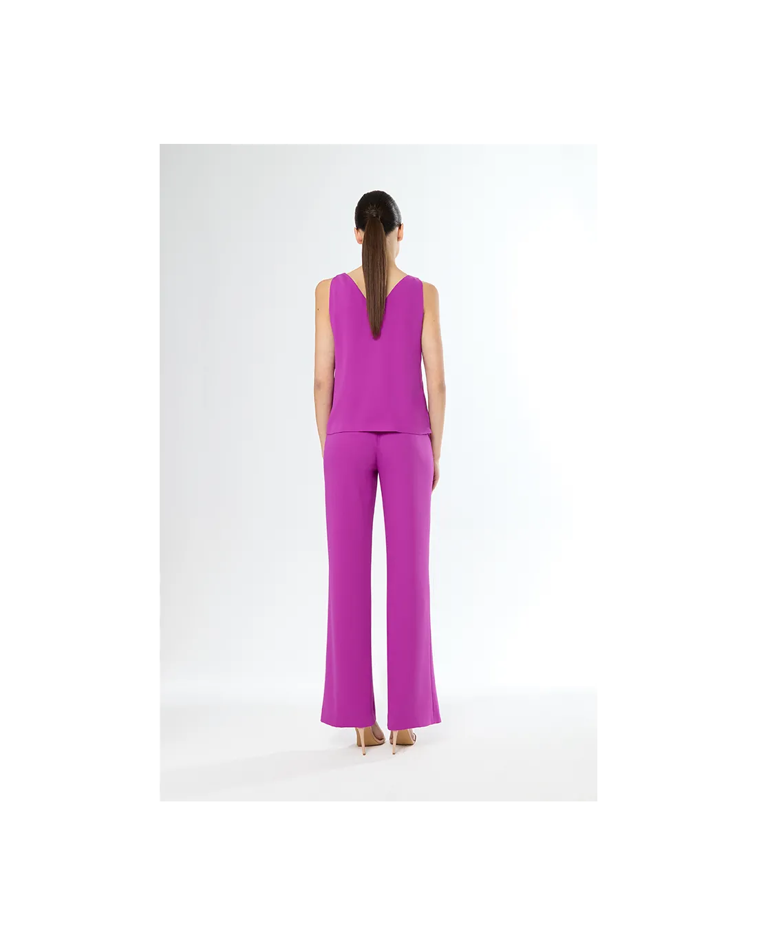 Pantalón ancho con drapeado en la parte central formando una lazada al tono.