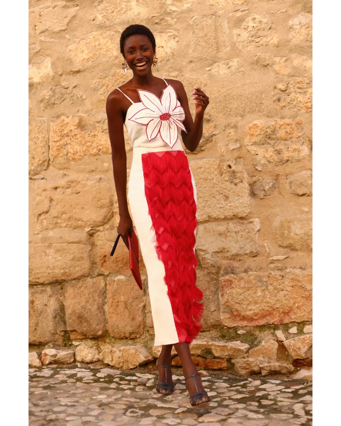 Top confeccionado en tejido de lino con tirantes finos. En la parte delantera lleva una maxi flor a relieve y a su espalda es ajustada con elástico.