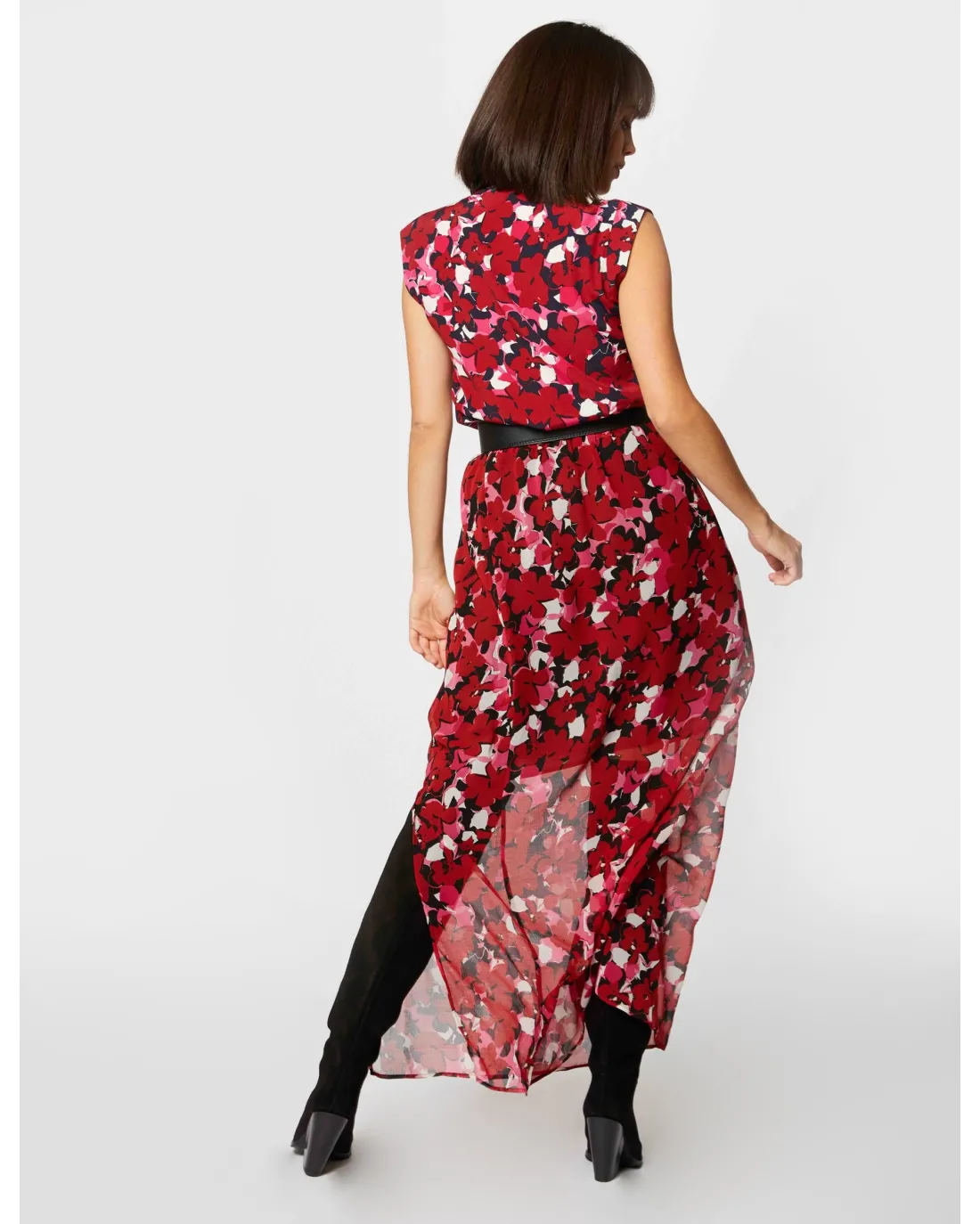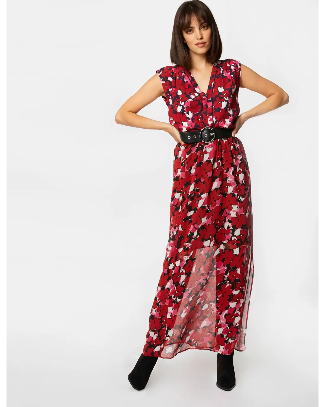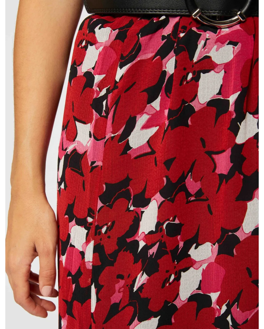 Pantalón ancho ligeramente acampanado en tejido fluido y bolsillos en el delantero. Con pinzas en la espalda y planchado con raya. Cierre con cremallera y botón.