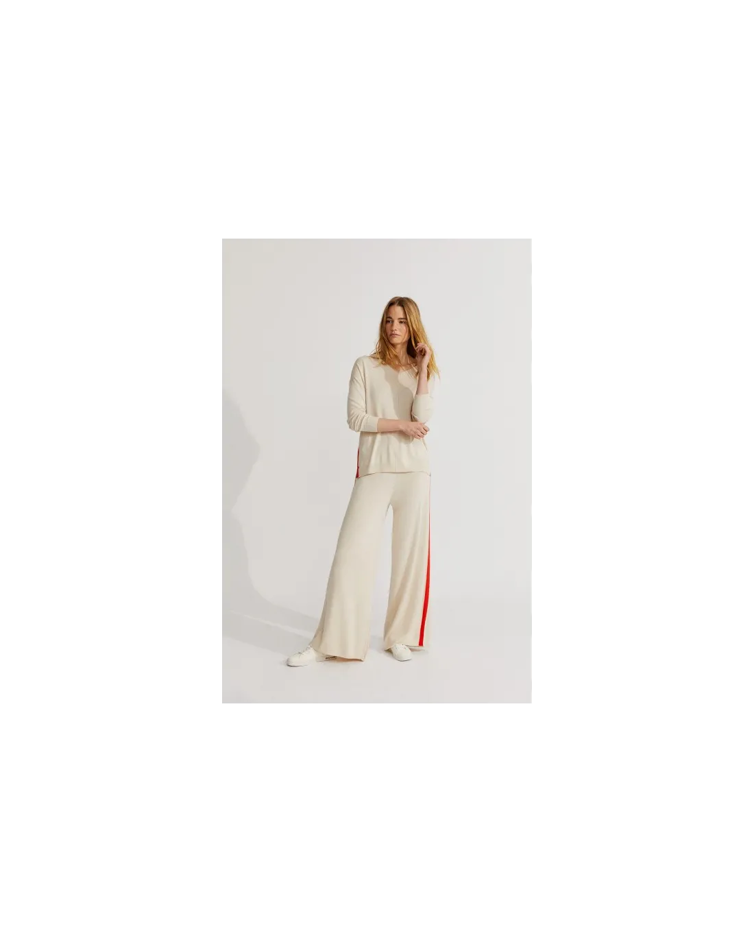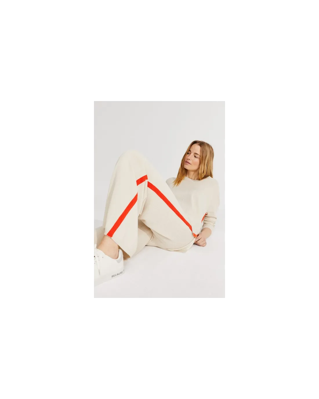 Pantalón confeccionado en un punto fino fabricado con materiales ecológicos, con cinturilla elástica y franja naranja en el lateral.