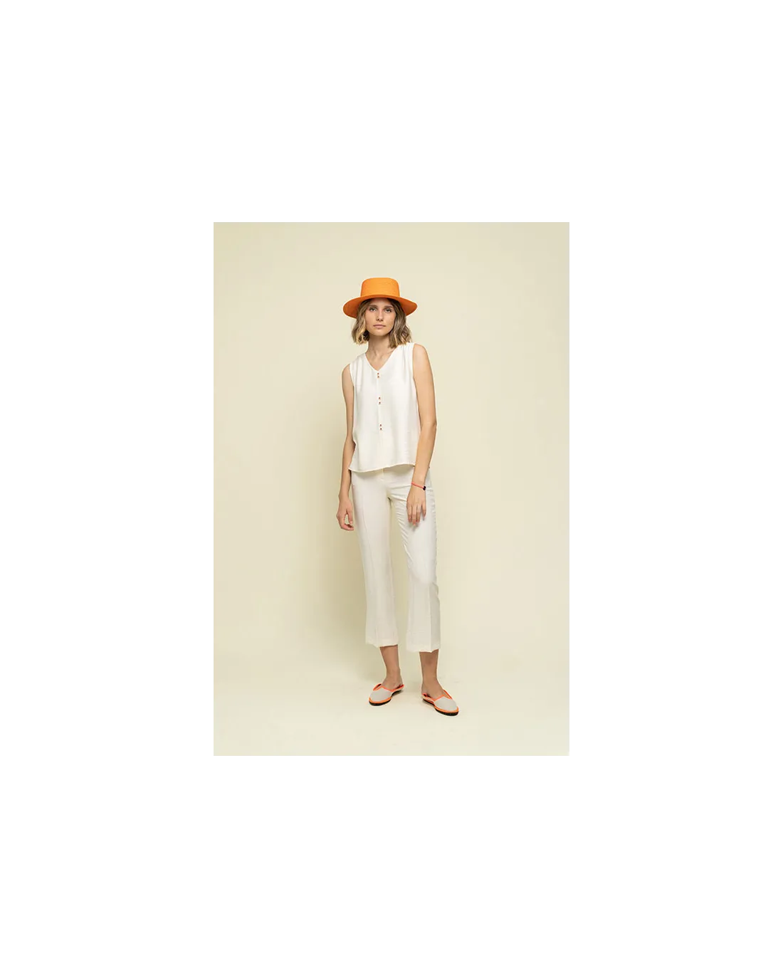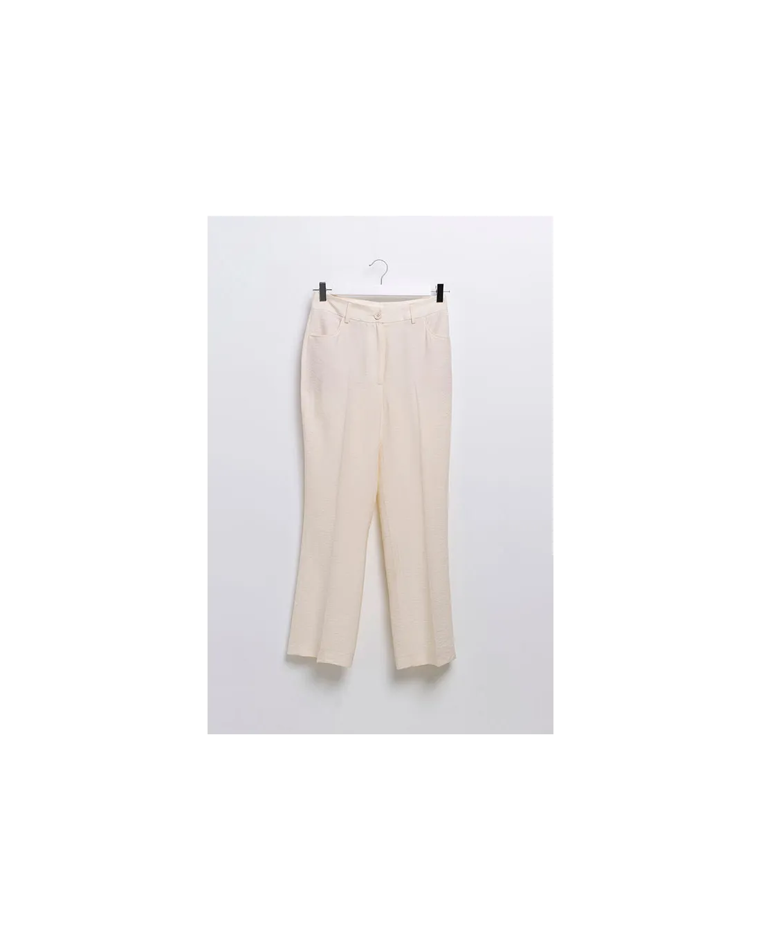 Chaqueta larga fluida de manga larga y sin bolsillos. Puedes cerrártela con la cinta tricolor de la cintura. Pantalón y top a juego.