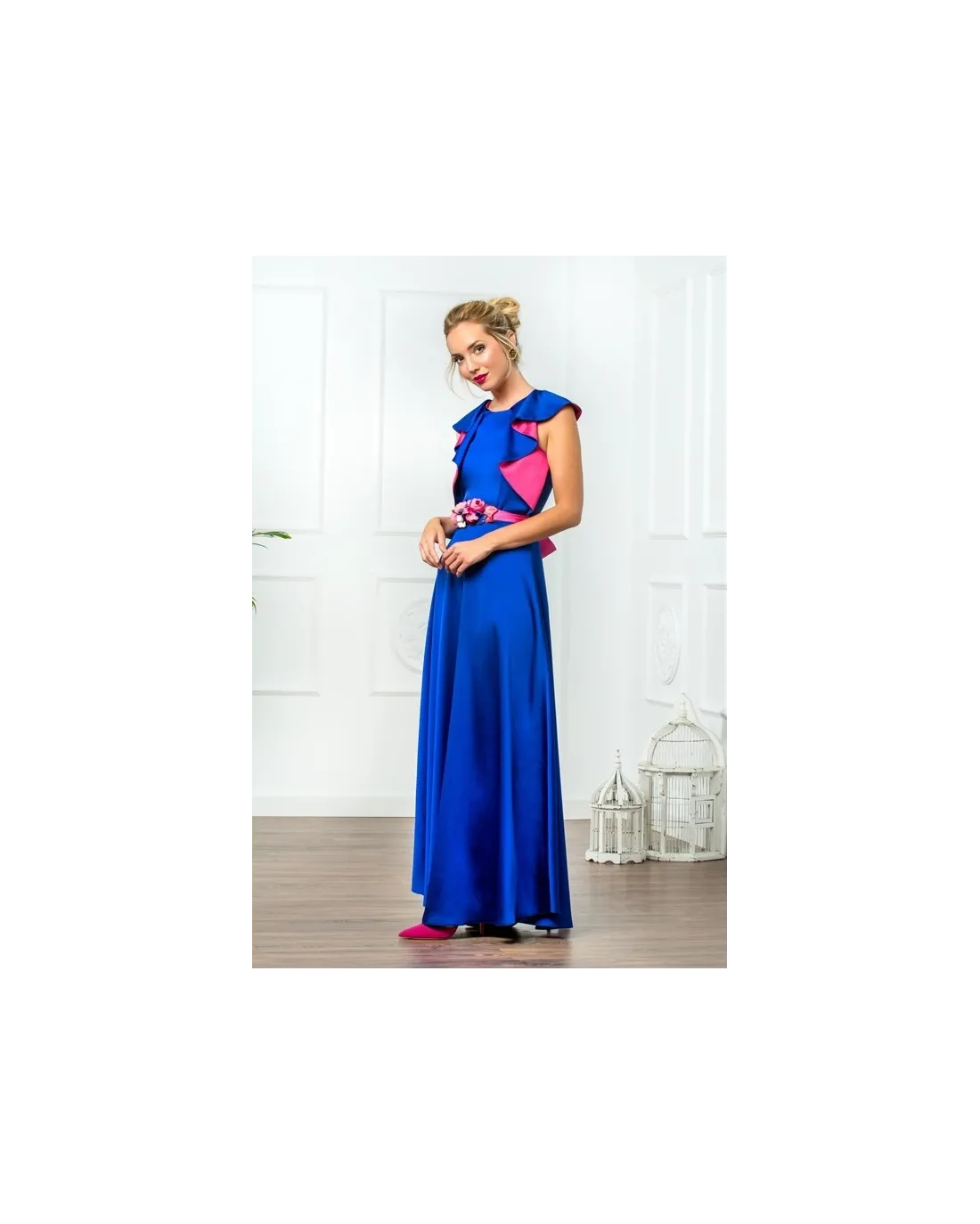 Vestido corto de corte recto con un peplum a contraste de color y hombro ancho. Incluye cinturón floral.