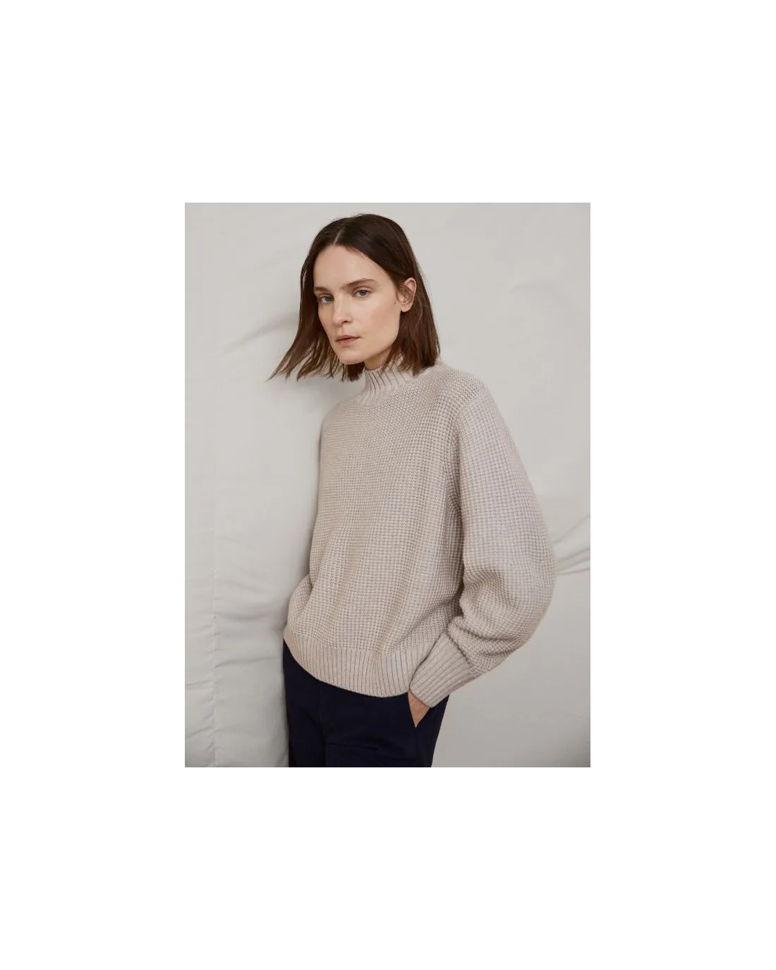 Jersey confeccionado en un punto de lana reciclada con cuello alto y manga raglán.