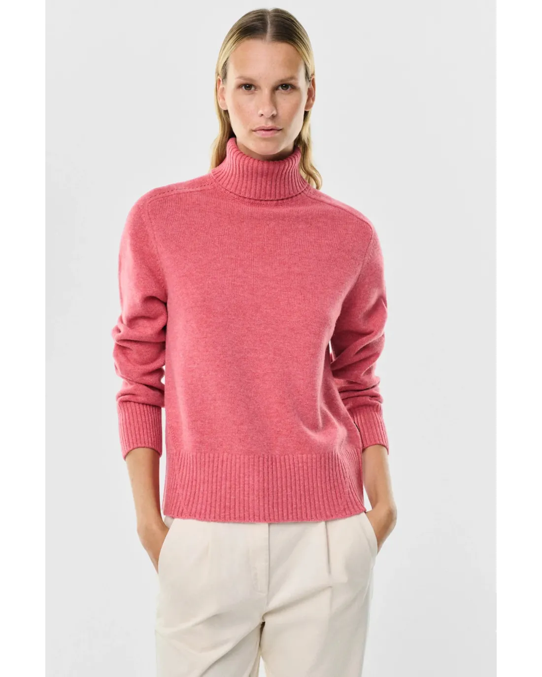 Jersey confeccionado en un punto de lana reciclada con cuello alto y manga raglán.