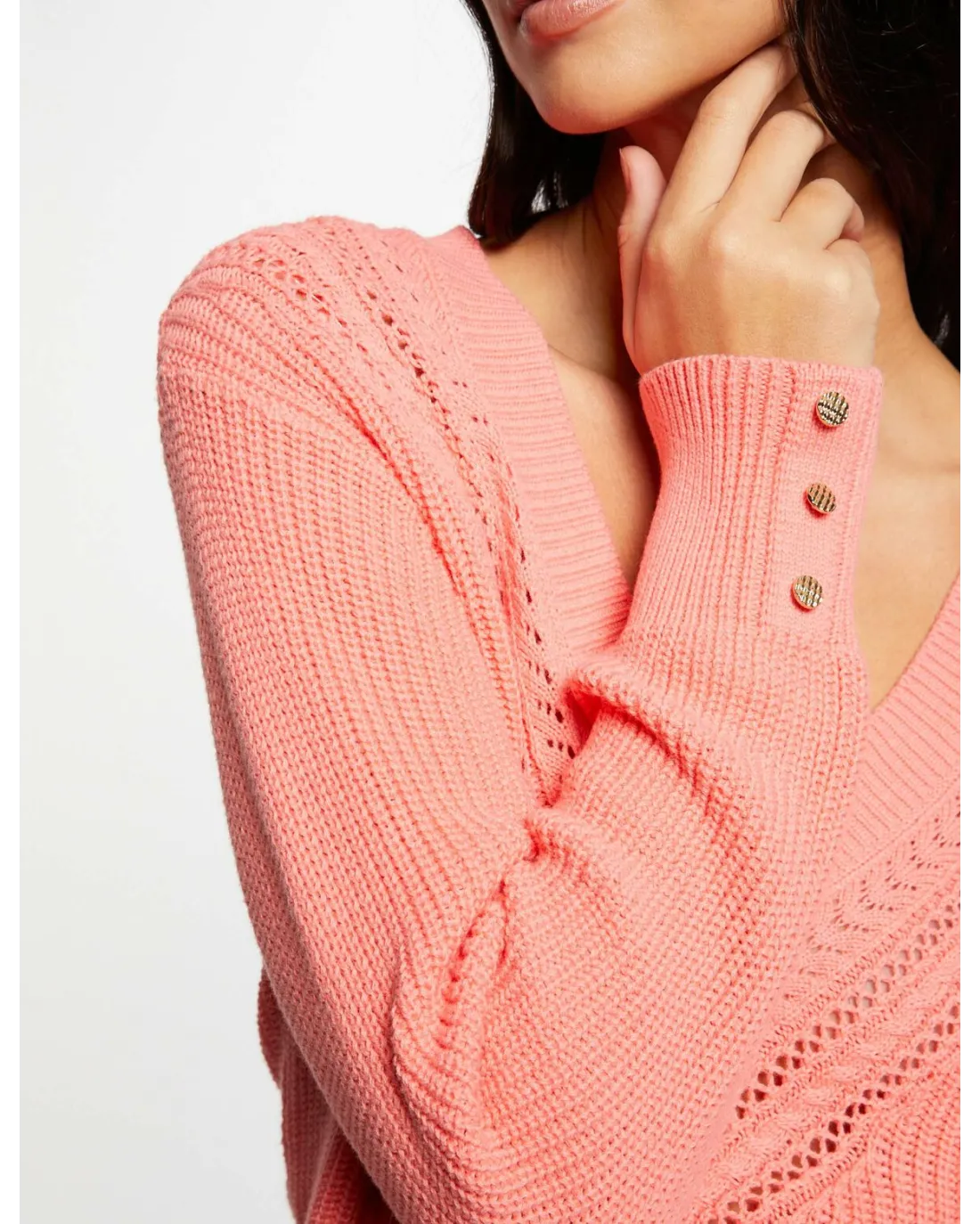 Jersey con Mangas de Encaje Morgan Jersey de punto fino de manga larga con apliques de encaje y cuello en V. Colección Morgan Color: fucsia.