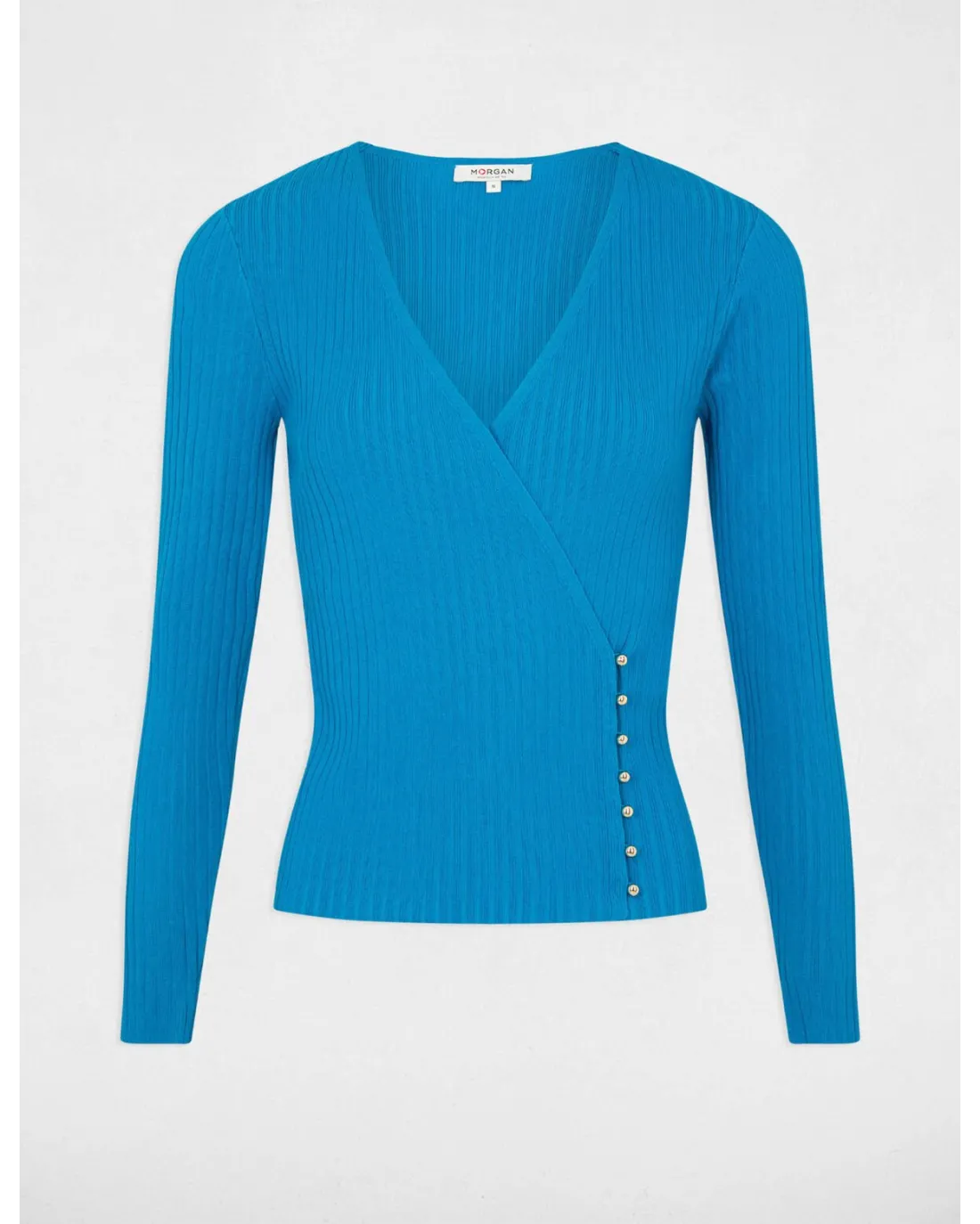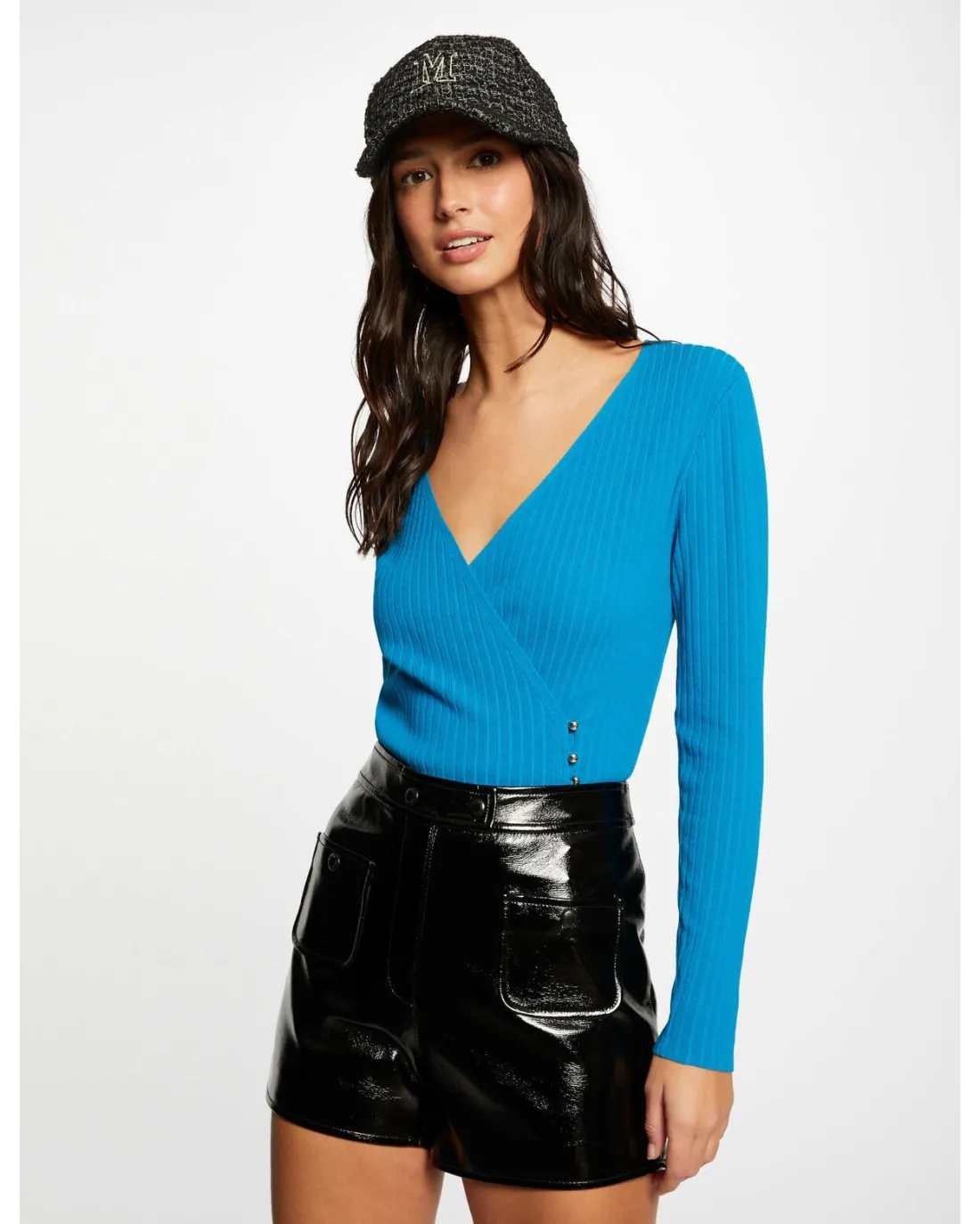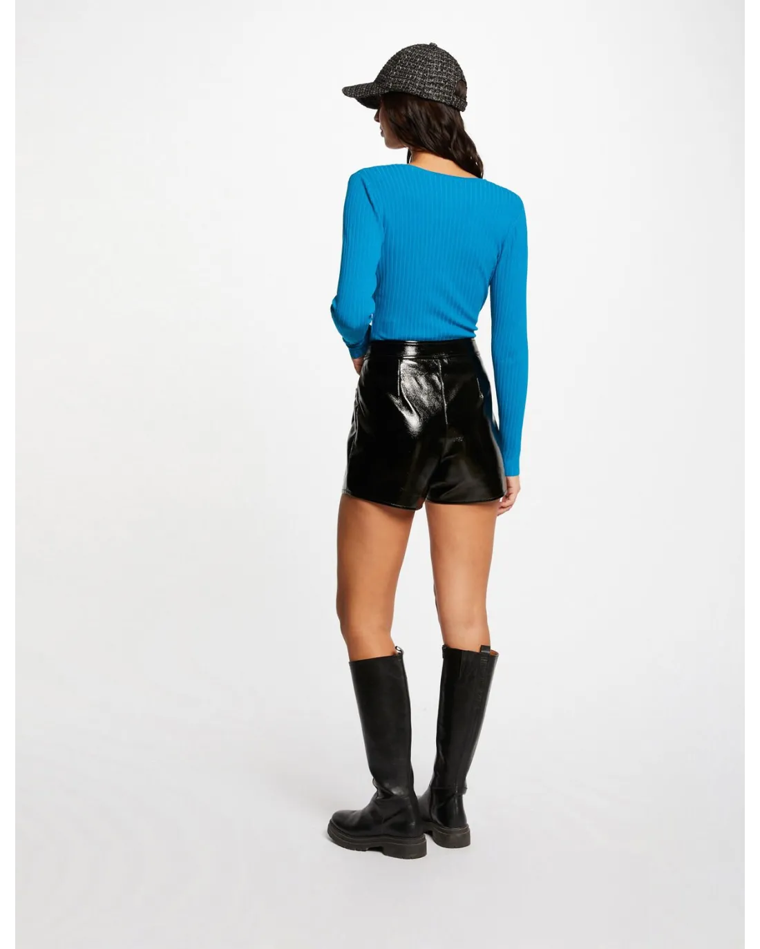 Jersey de corte recto confeccionado en punto de canalé con manga 3/4 y escote en V por delante y por detrás.
