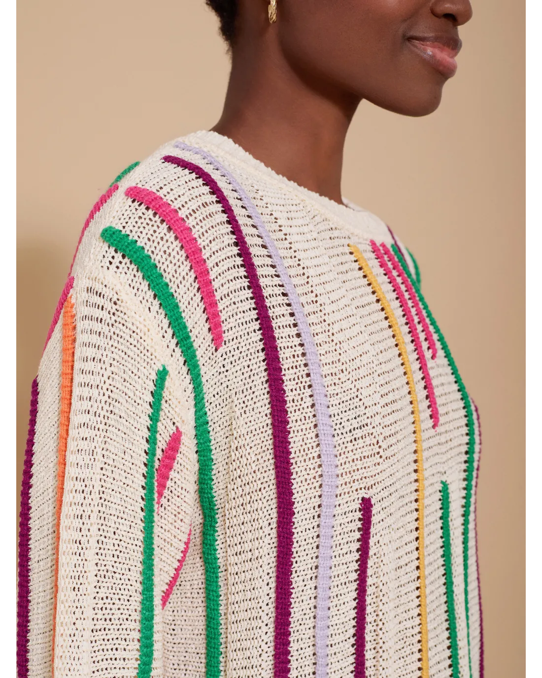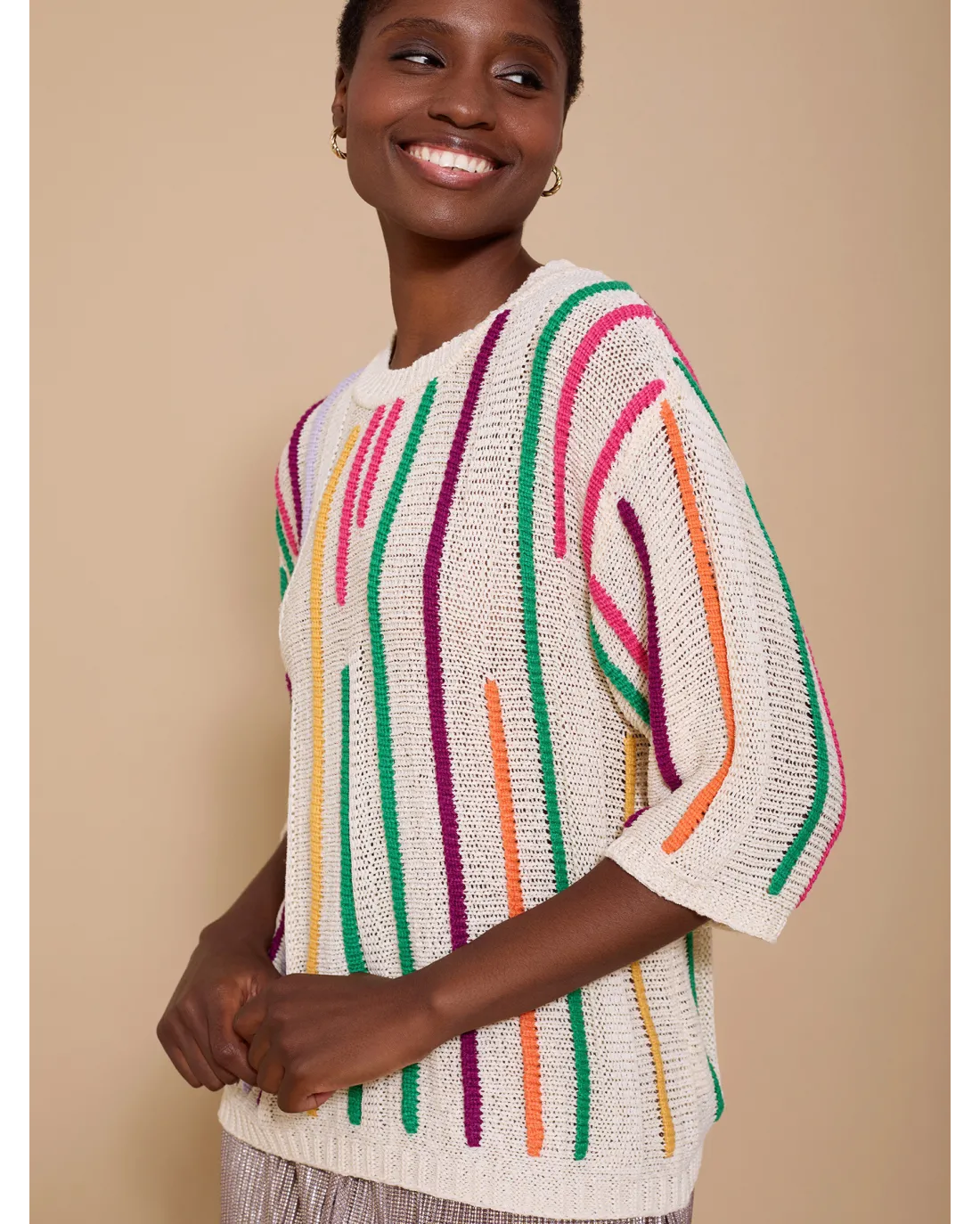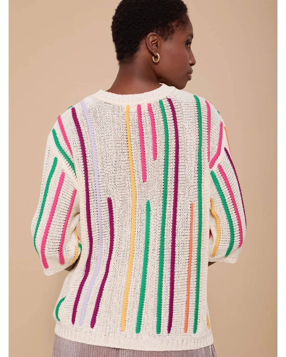 Jersey de punto fino de manga larga con apliques de encaje y cuello en V.