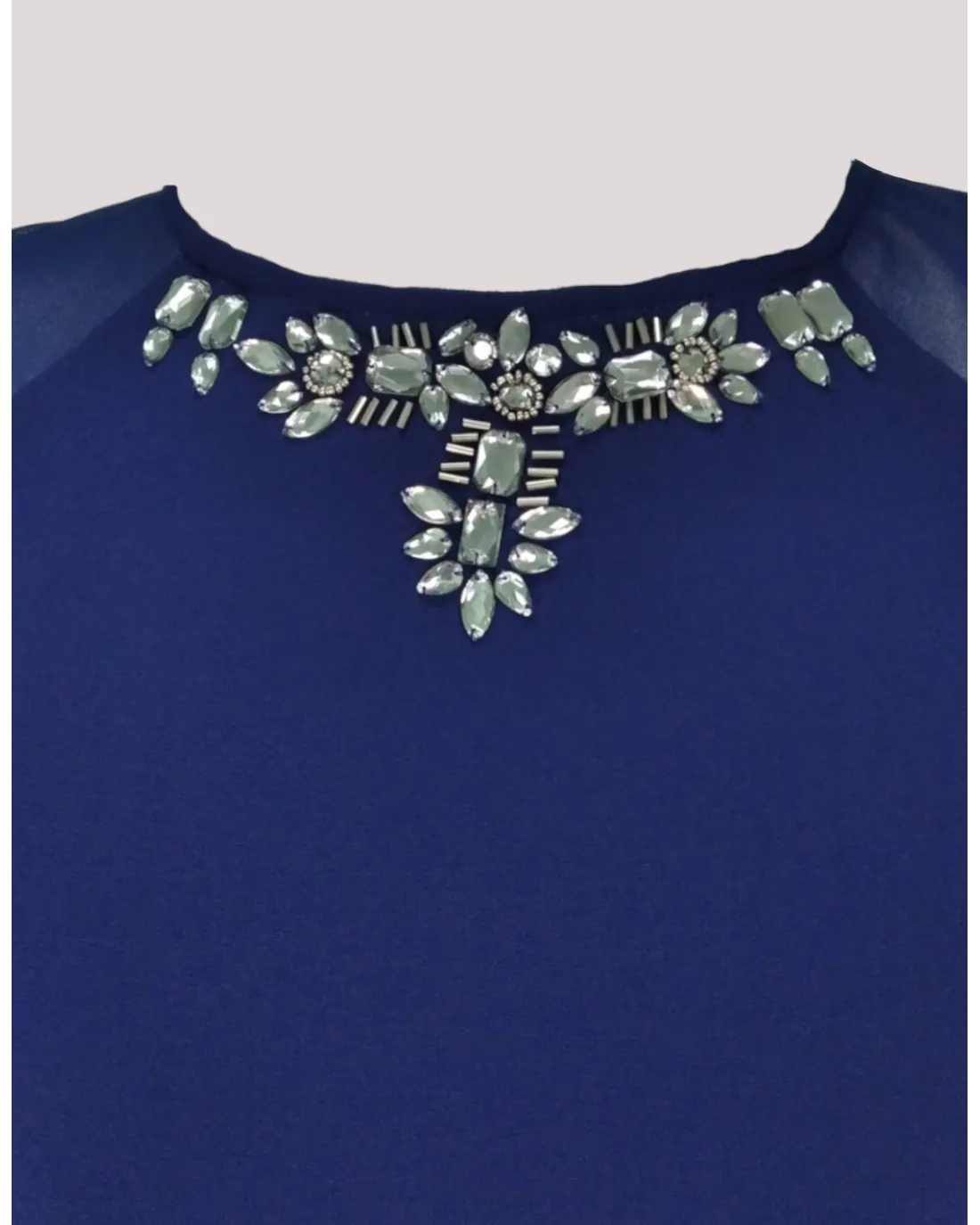 Vestido corto confeccionado en gasa, con escote halter donde lleva un aplique a contraste en el pecho y falda de vuelo.