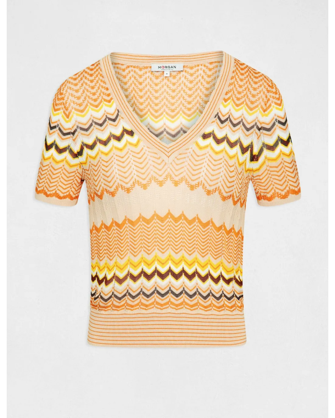 Jersey con Estampado en Chevron de Manga Corta Morgan