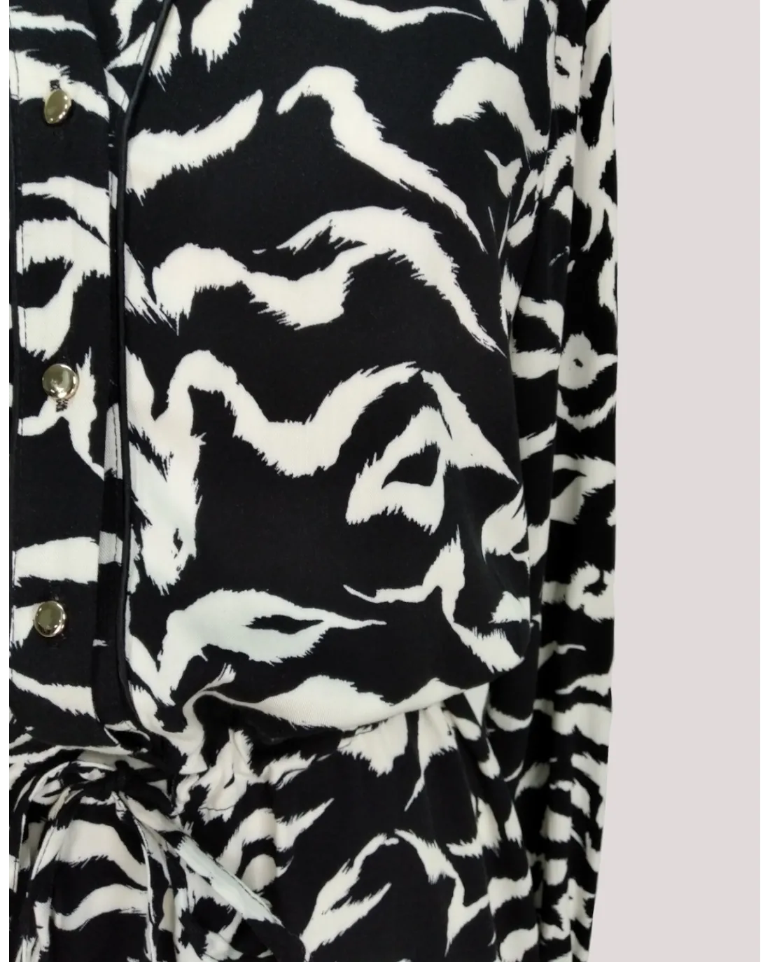 Vestido corto camisero de corte holgado y estampado con manga larga y cintura para fruncir.