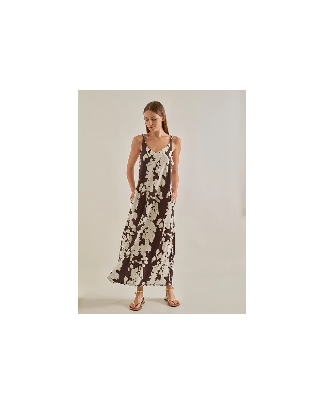 Vestido de largo midi confeccionado en un ligero de punto con escote redondo y hombreras finas. Incluye lazada a la cintura.