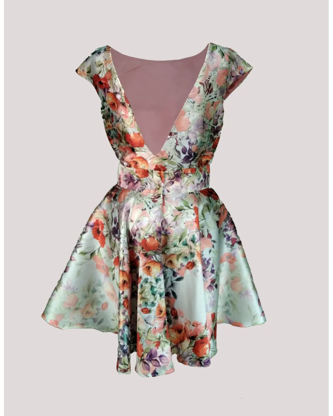 Conjunto de falda y cuerpo; Falda estampada en leopardo con color verde militar y cuerpo con escote en V en pecho y espalda de la que acaba un rizo.