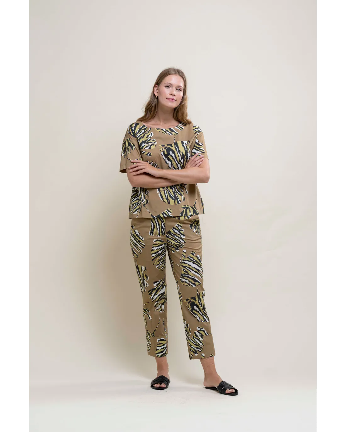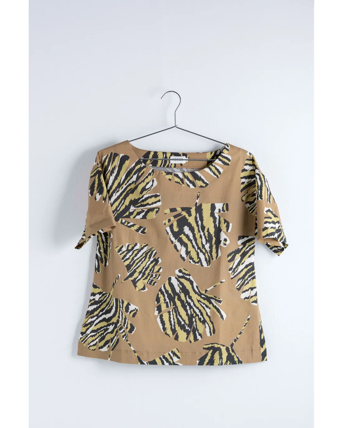 Blusa de corte recto con manga corta y escote de barco. Aberturas laterales.