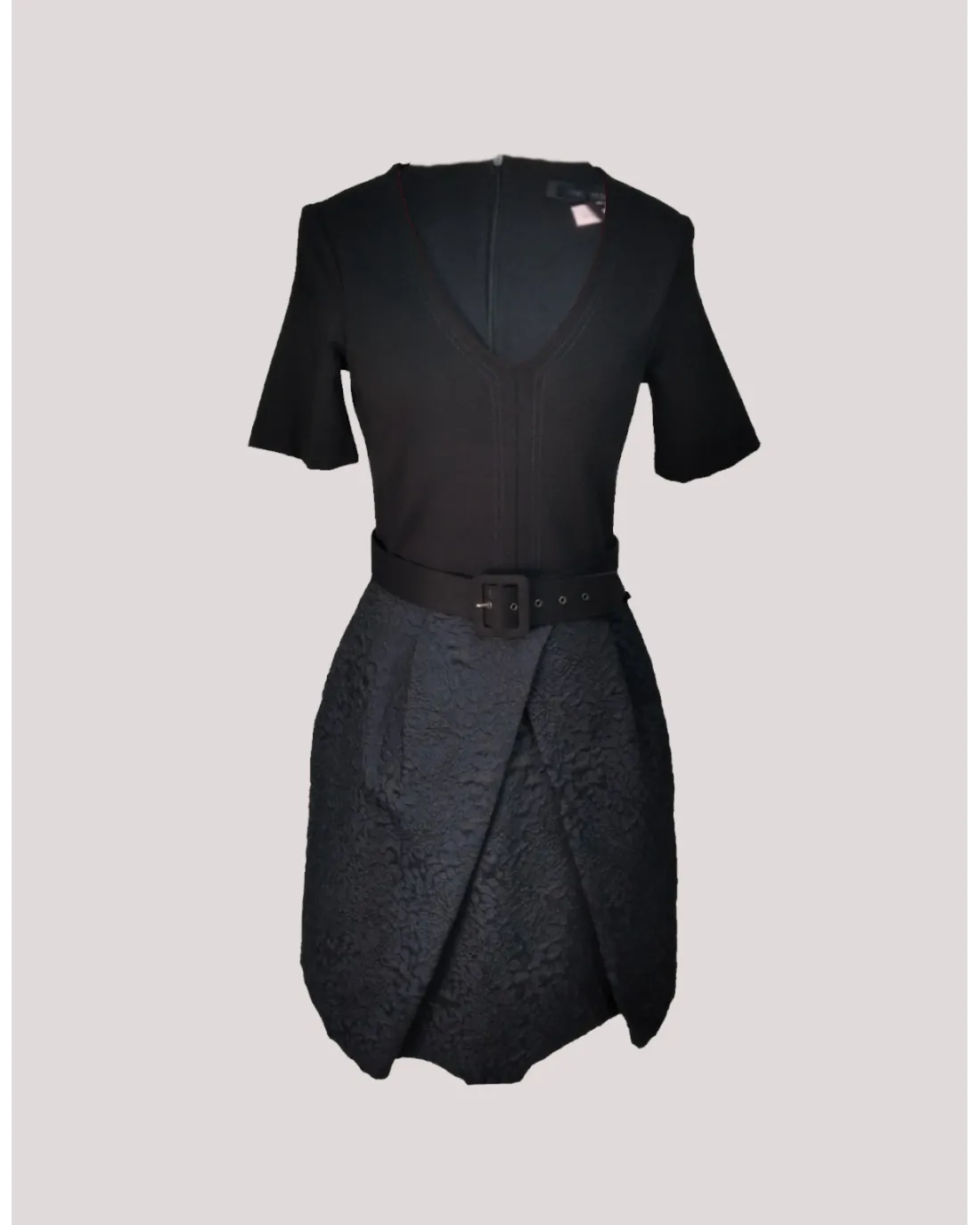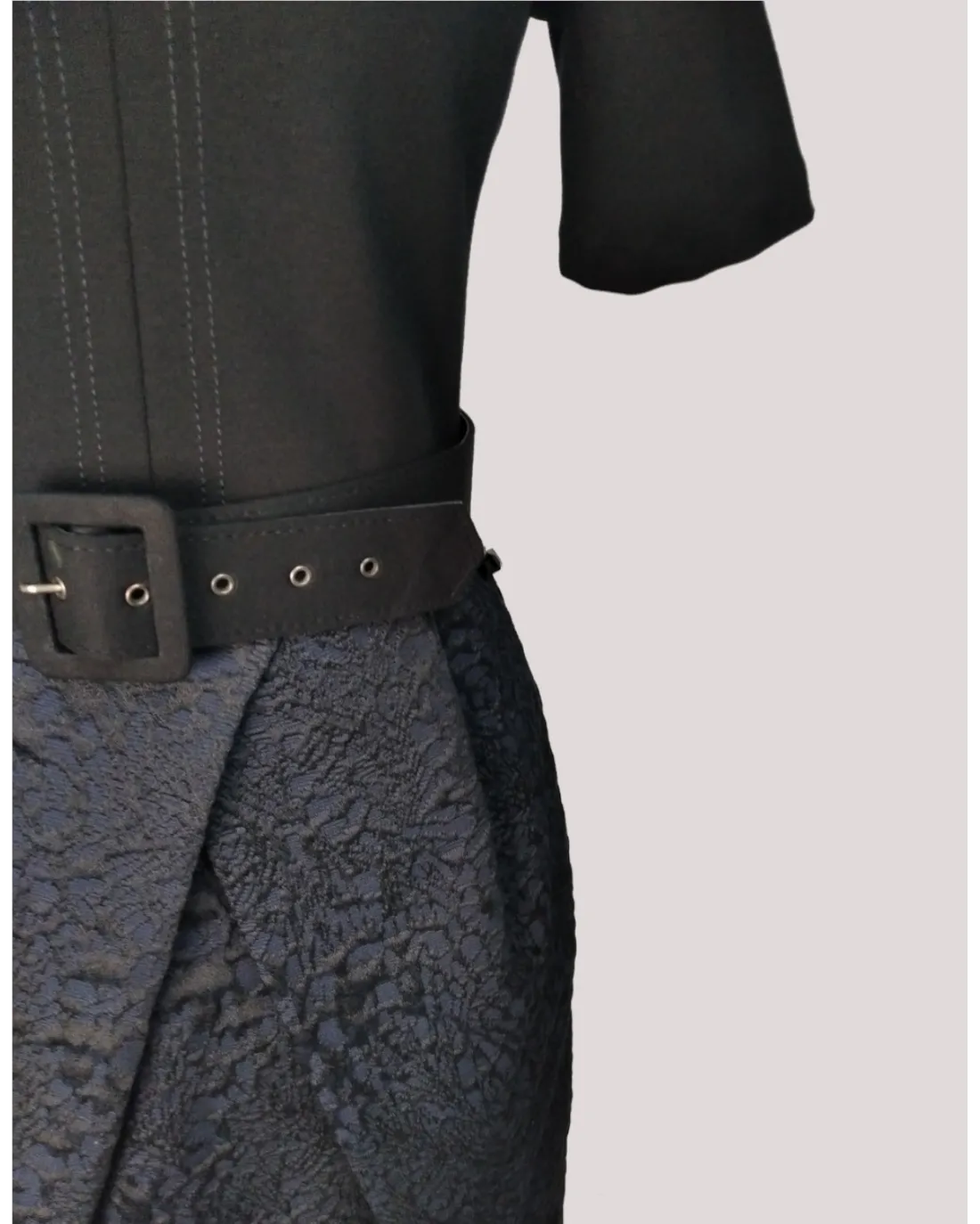 Top de hombros anchos con aplique de encaje en el pecho y espalda con escote redondo y en V por la parte de atrás.