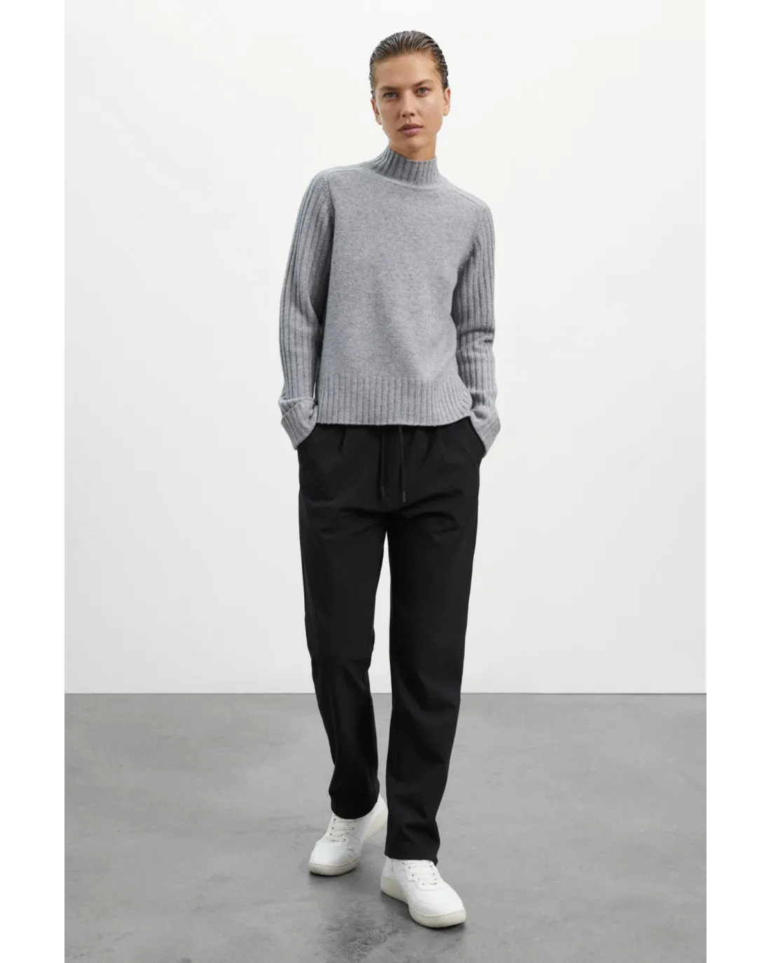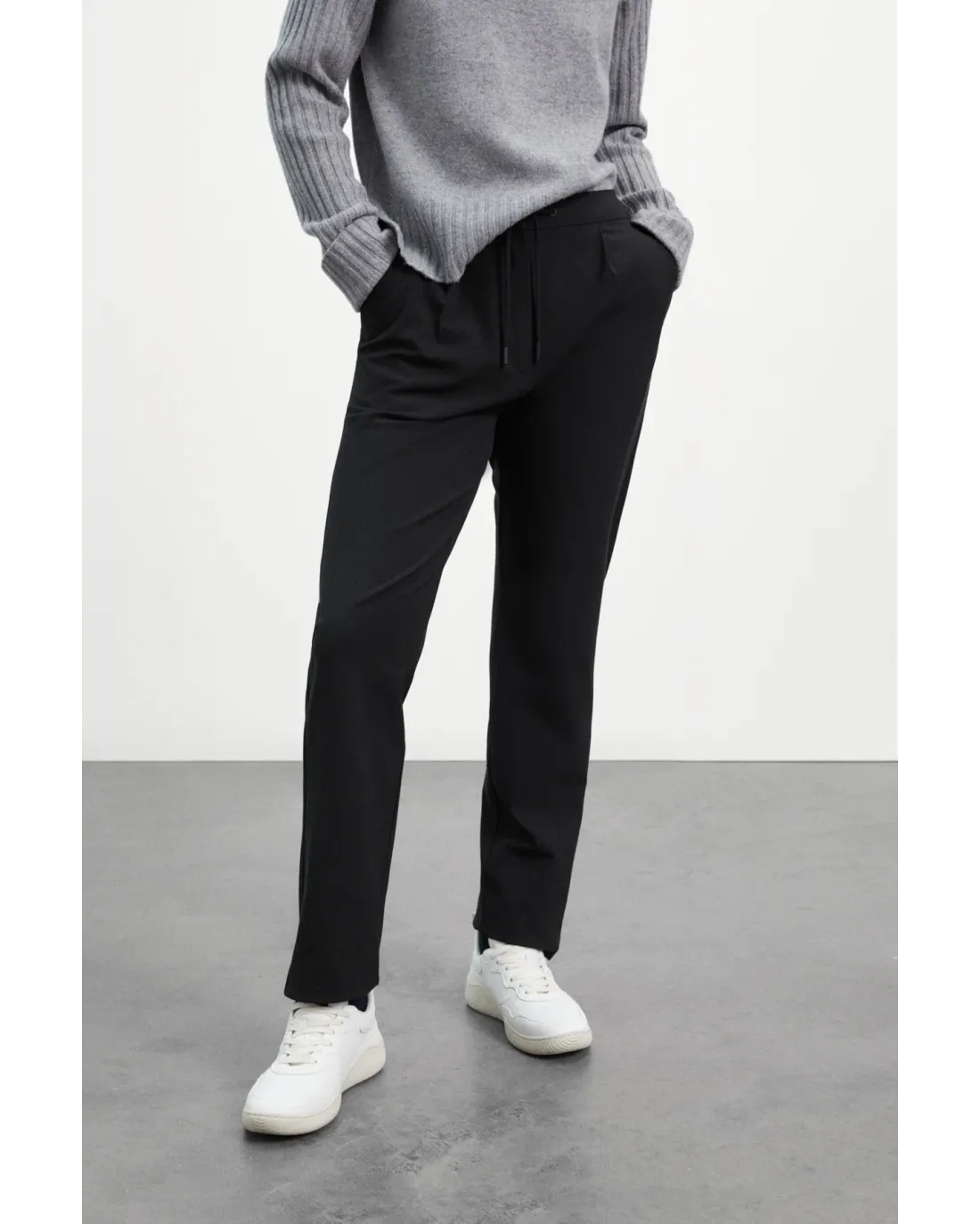 Pantalón confeccionado en fibras Tencel con cintura alta y elástica ajustable con cordones, con bolsillos delanteros y traseros.