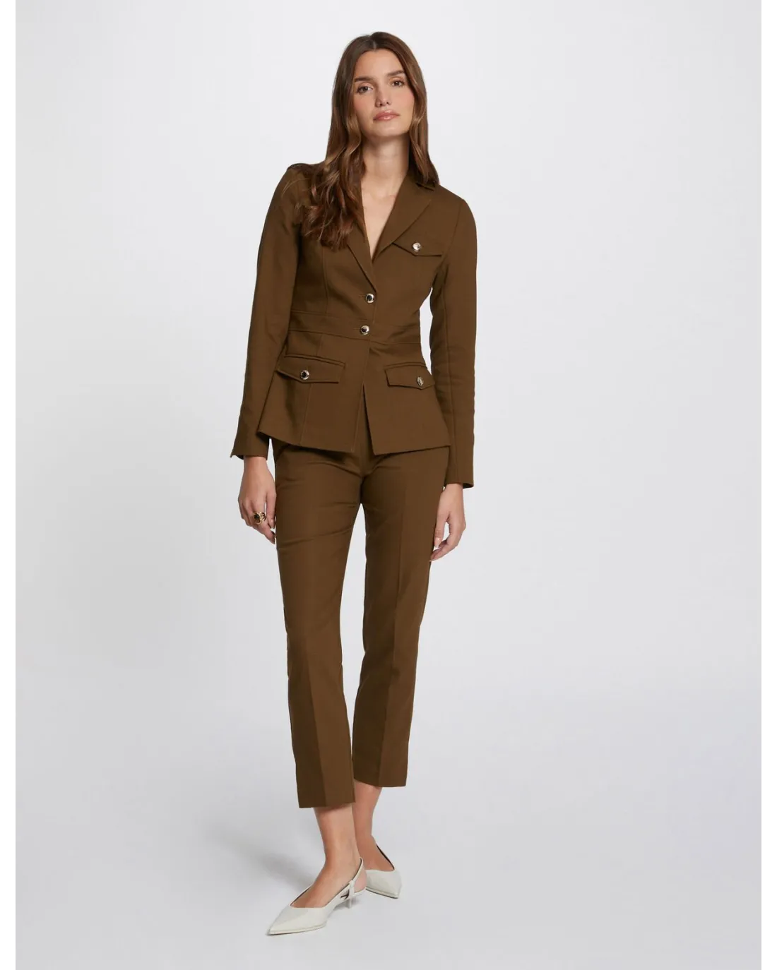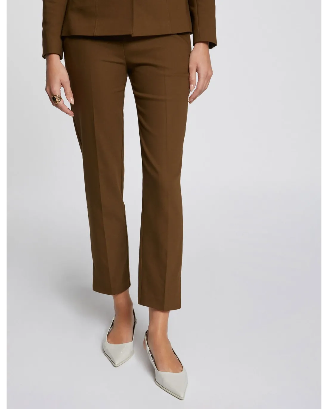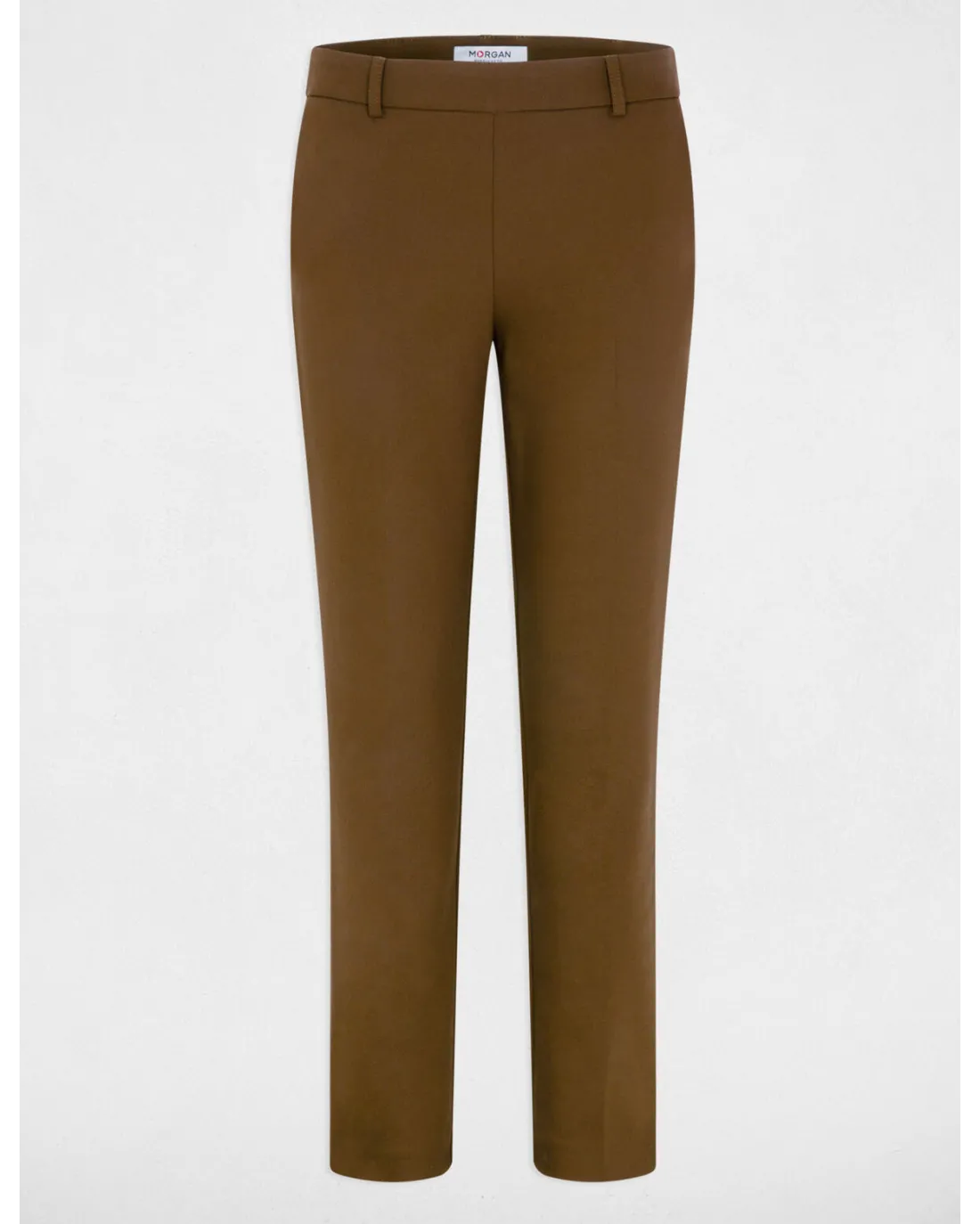 Pantalón cigarette estilo corto, de talle estándar, trabillas y cierre de cremallera lateral.