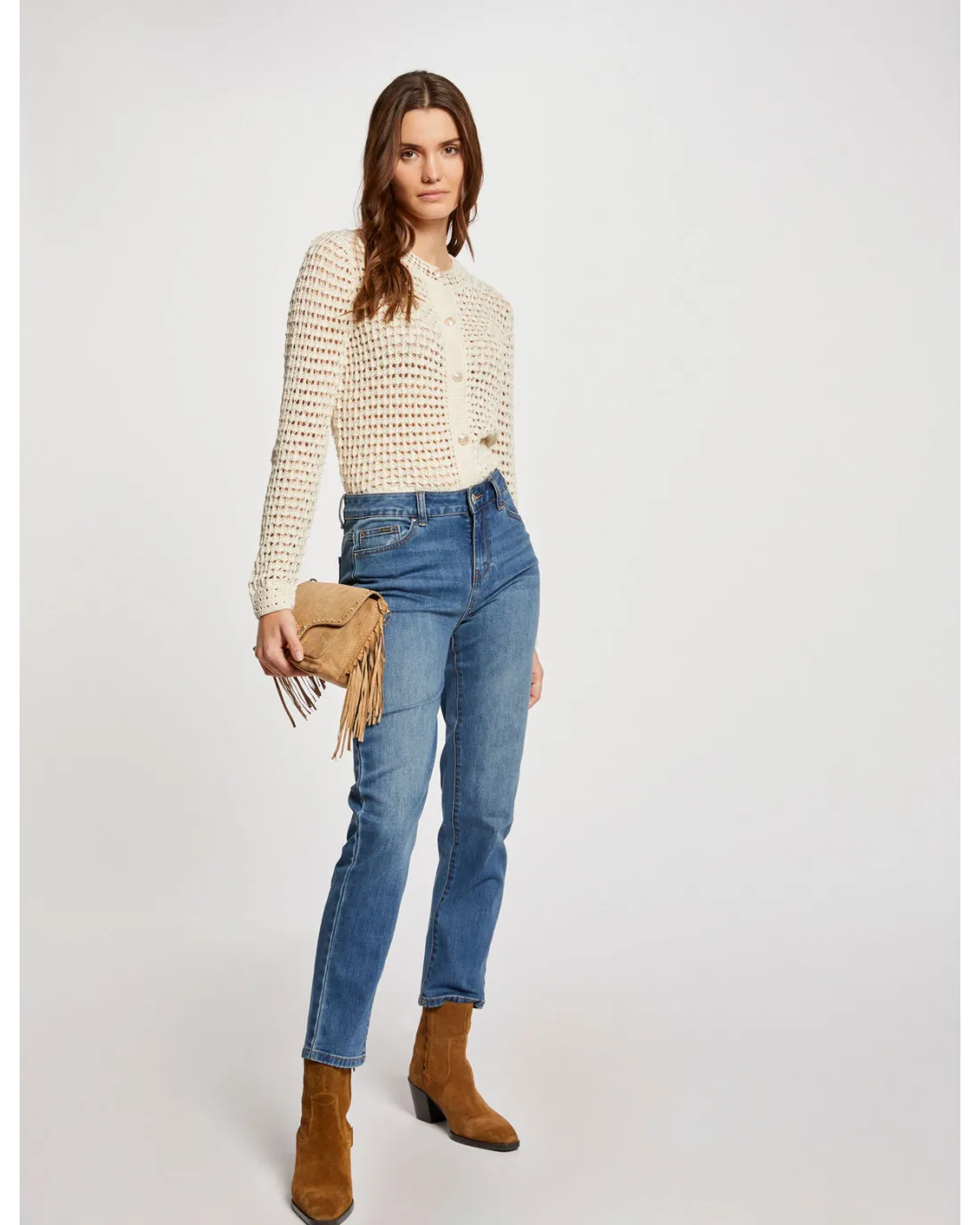 Pantalón de corte skinny de talle alto con botones centrales y bolsillos laterales y dos traseros.