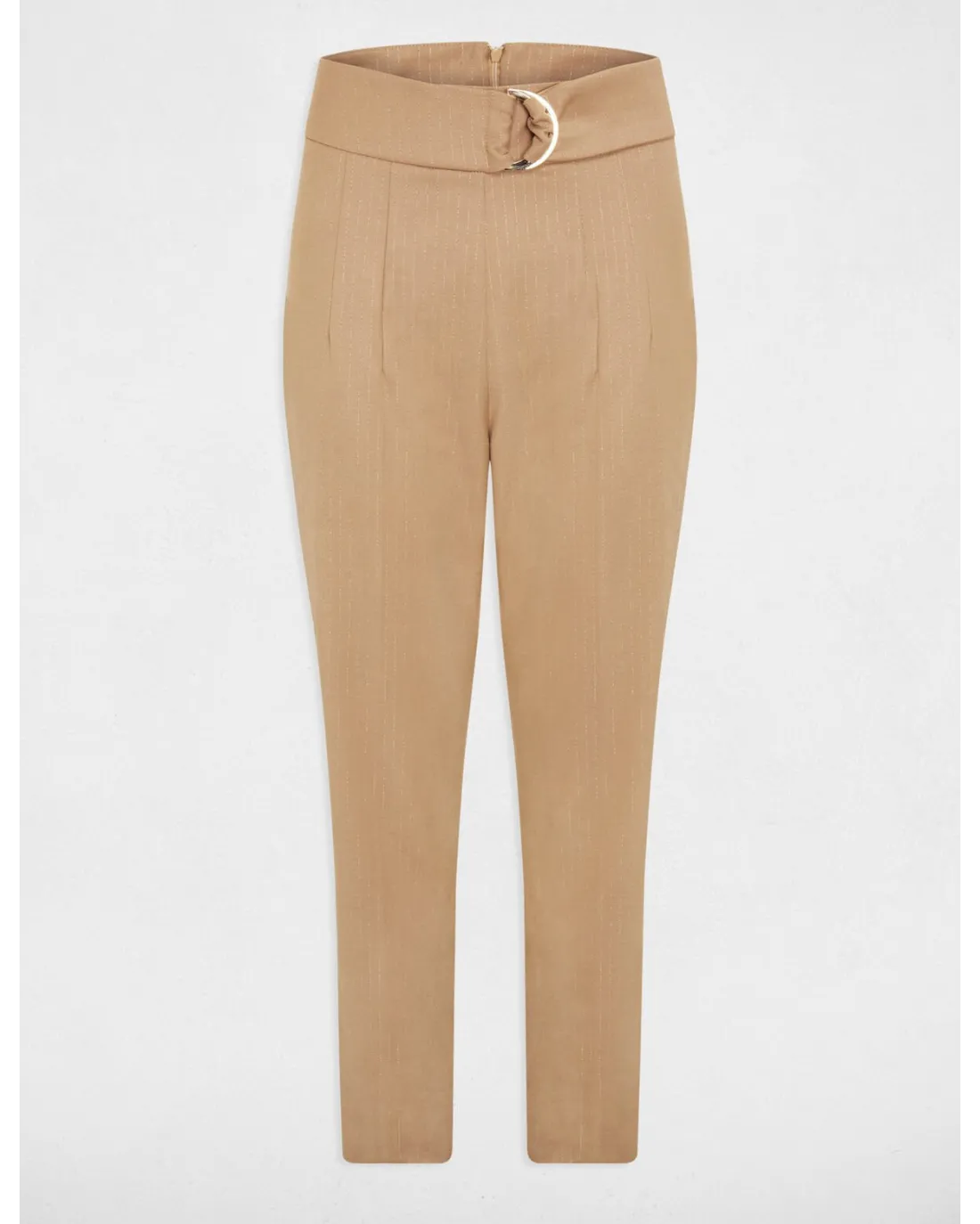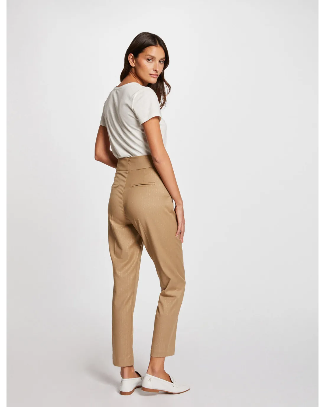 Chaqueta de corte ajustado con rayas doradas, cuello con muescas, manga larga, cierre de un botón dorado y dos bolsillos con ribete en la parte delantera.