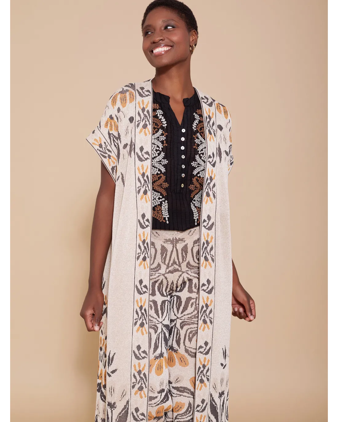 Kaftán confeccionado en punto, estampado con manga corta ranglan. Perfecto para combinar con pantalón M90K14NUT.