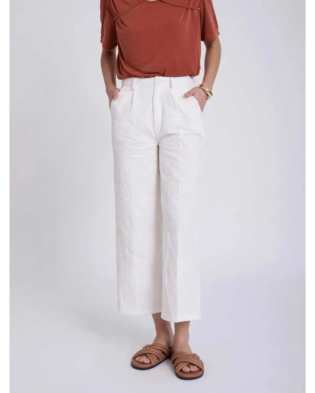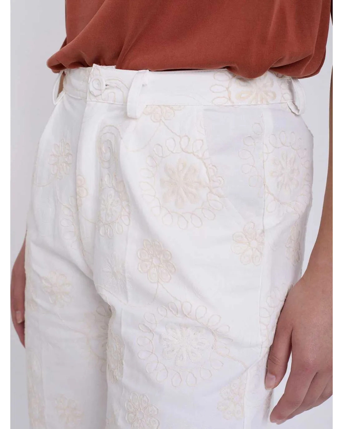 Camisa bordada confeccionada en algodón con cuello camisero, manga corta y cierre de botones delanteros.
