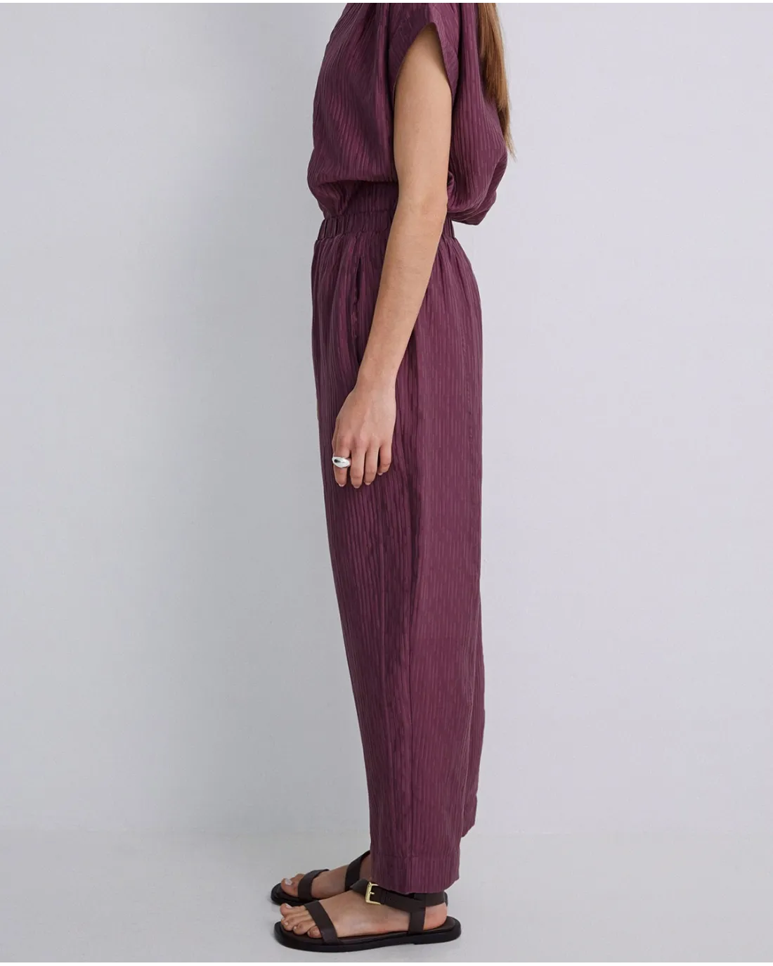 Blusa confeccionada en tejido Lyocell ondulado con escote en V, manga corta amplia y abertura laterales.