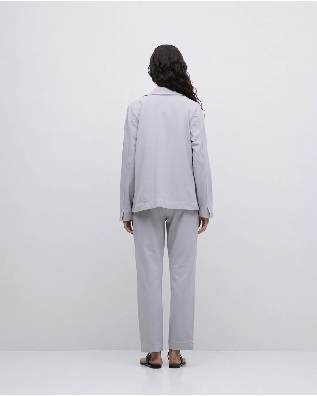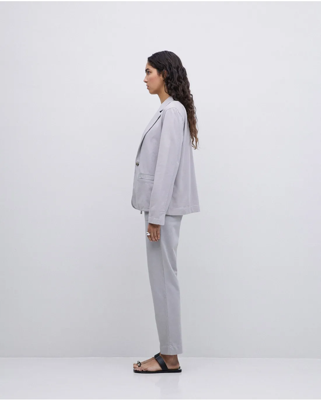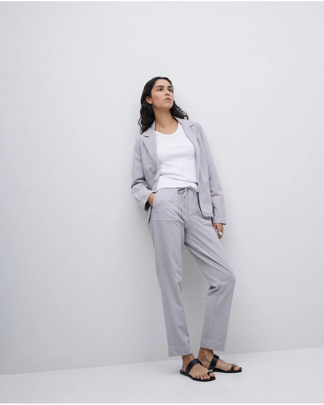 Pantalón slim de talle estándar con cinco bolsillos y cierre de botón y cremallera delantera.