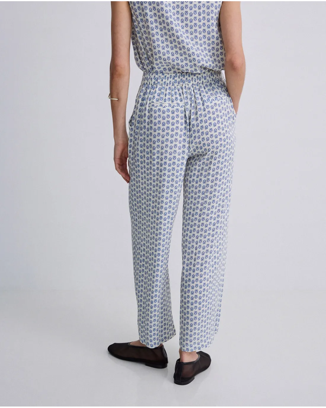 Top Tirantes Yerse Top confeccionado en tejido fluido estampado con tirantes y escote cuadrado. El top cierra con botones centrales. Colección Yerse Color: blanco y azul.