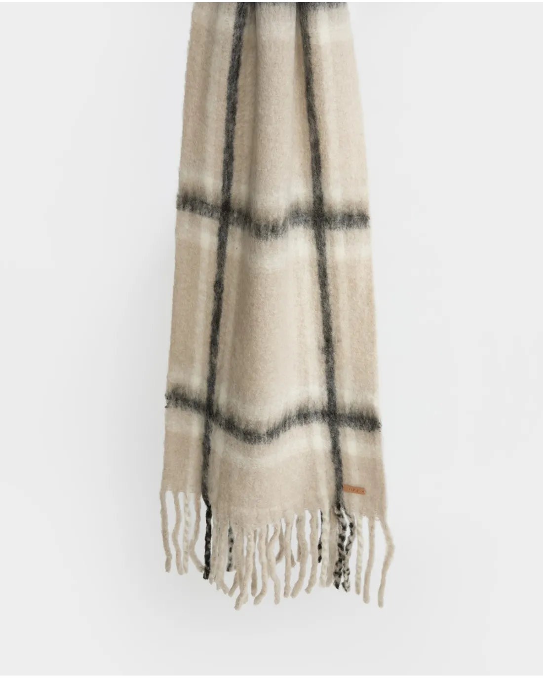 Gorra de mujer en tonos camel con letrero en la parte delantera.