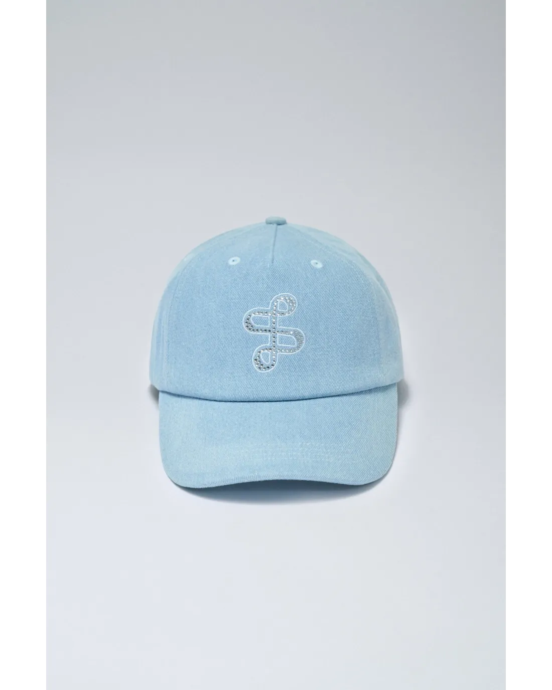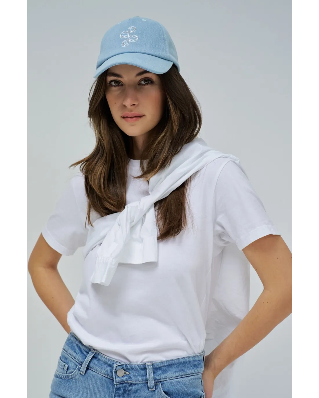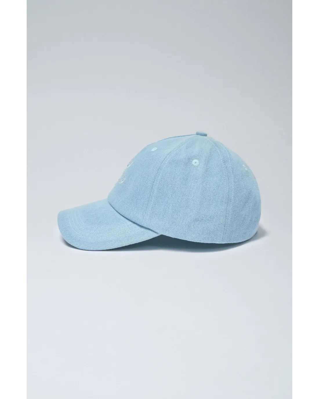 Gorra transpirable a rayas blancas y marino con visera y ajustable por la parte de atrás.