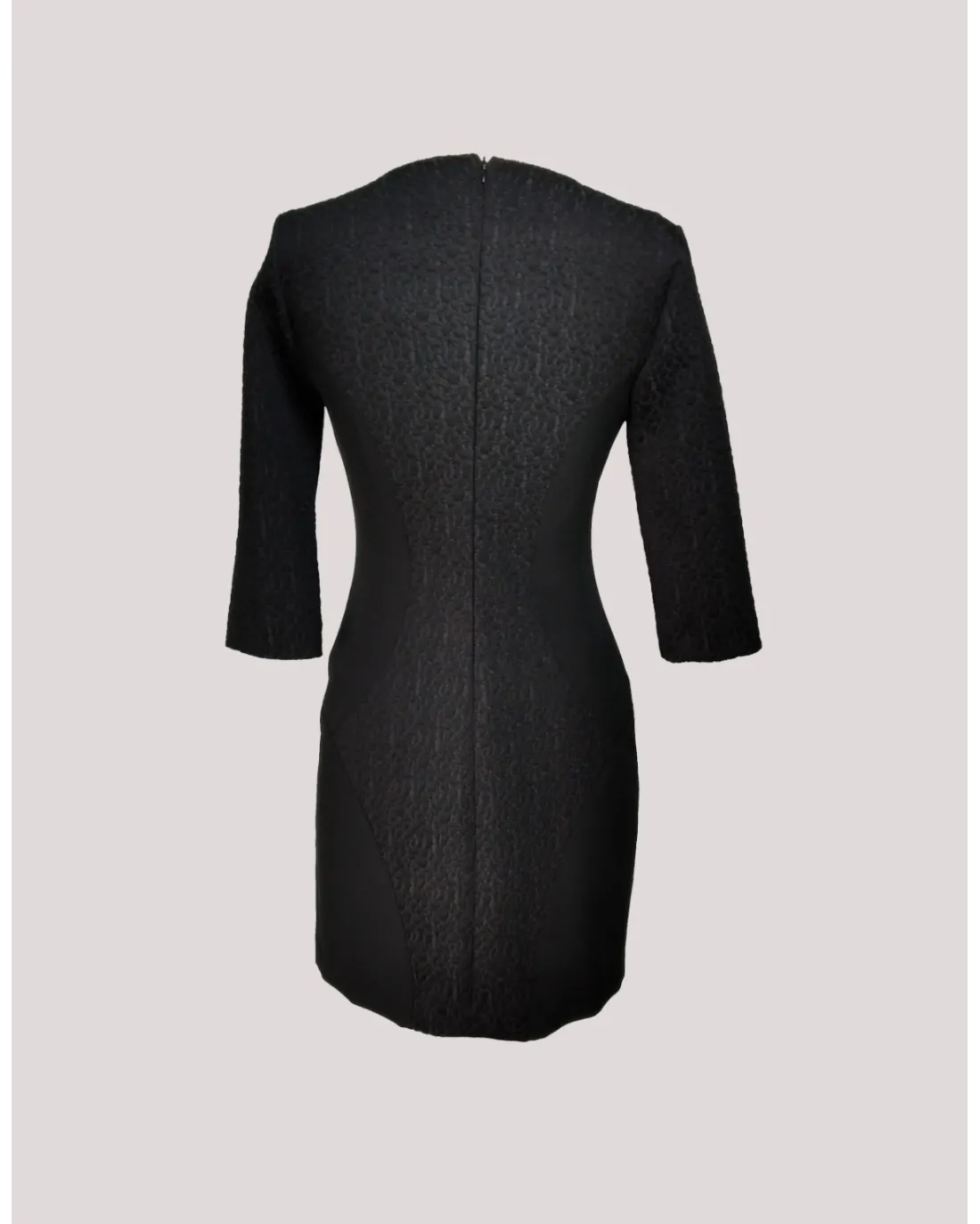 Vestido corto ajustado con escote redondo y manga 3/4.