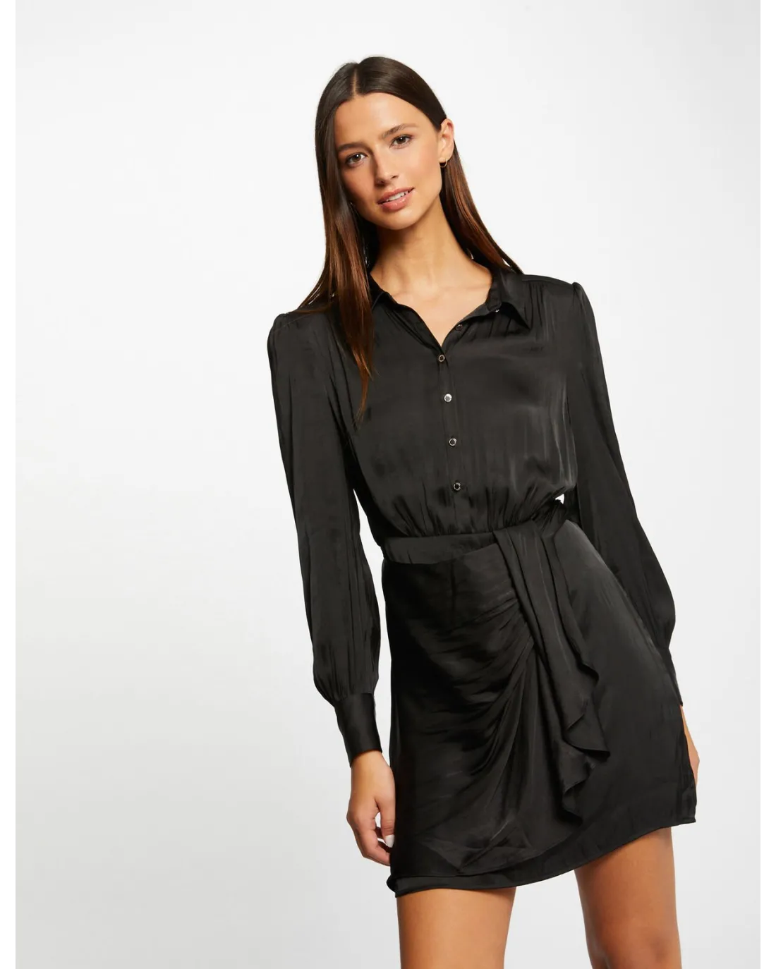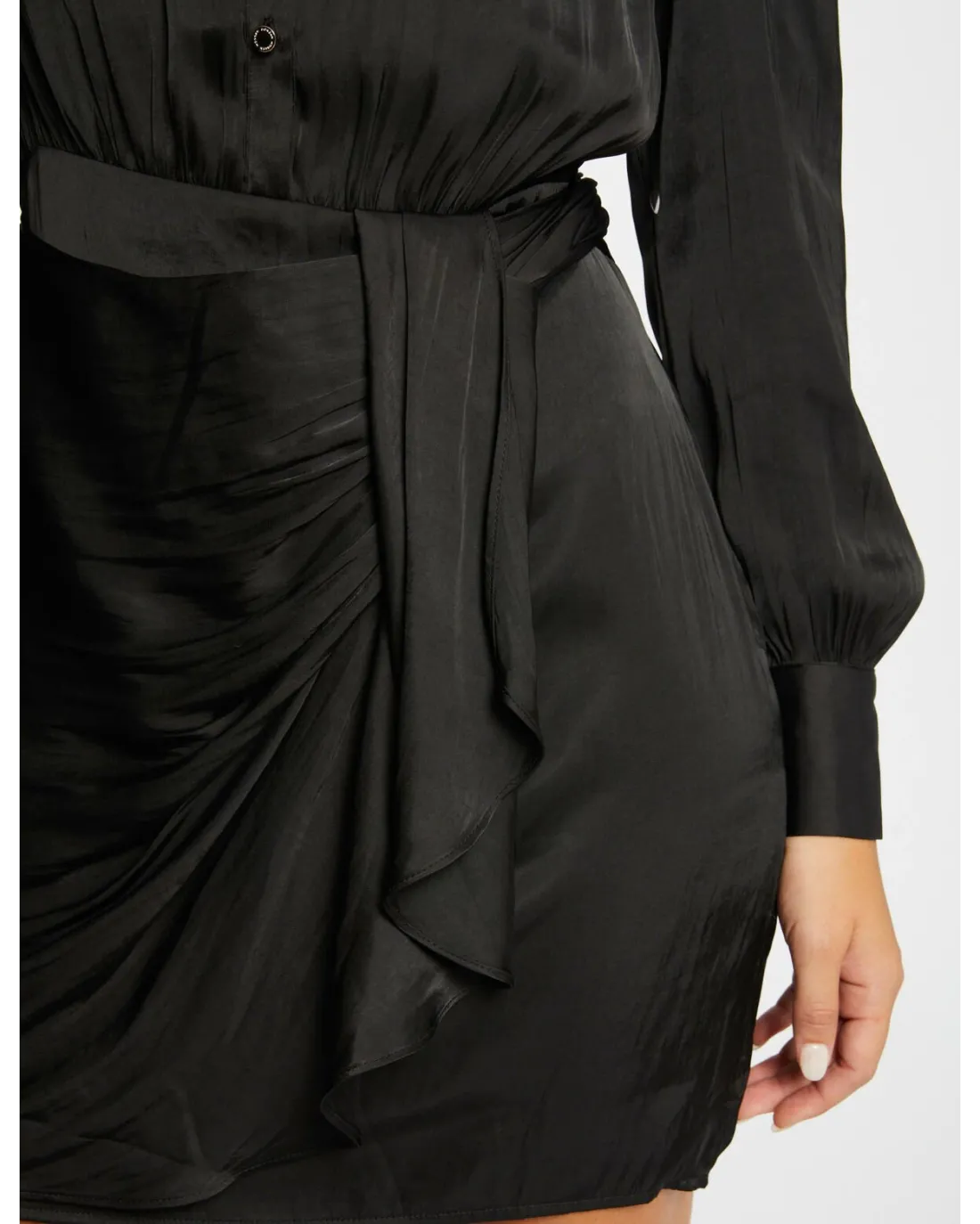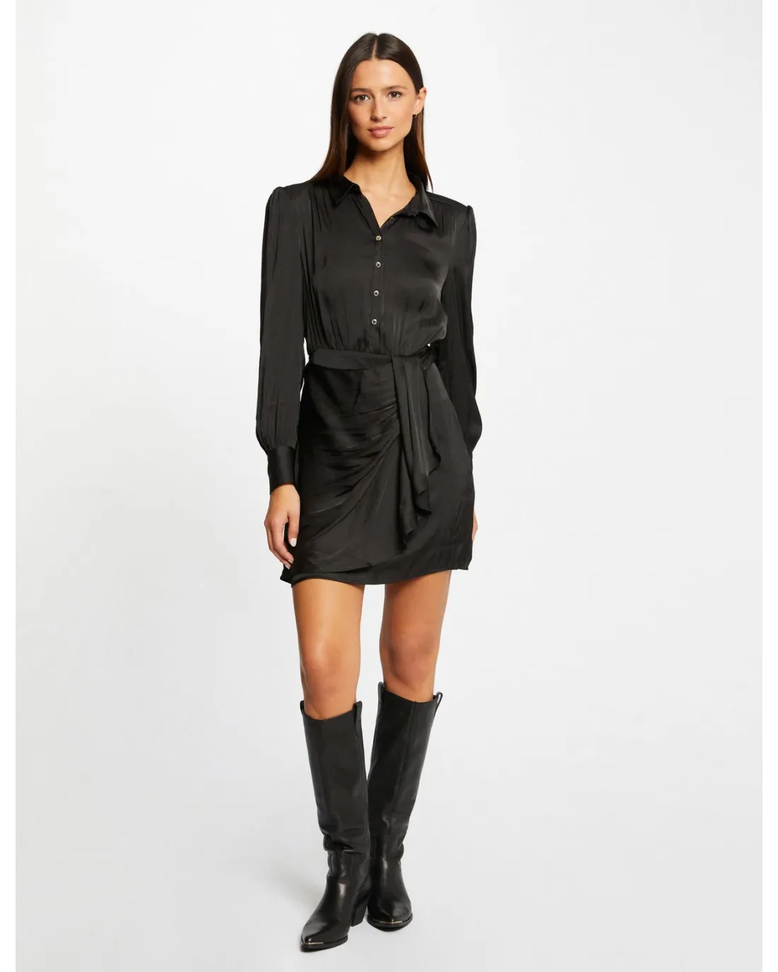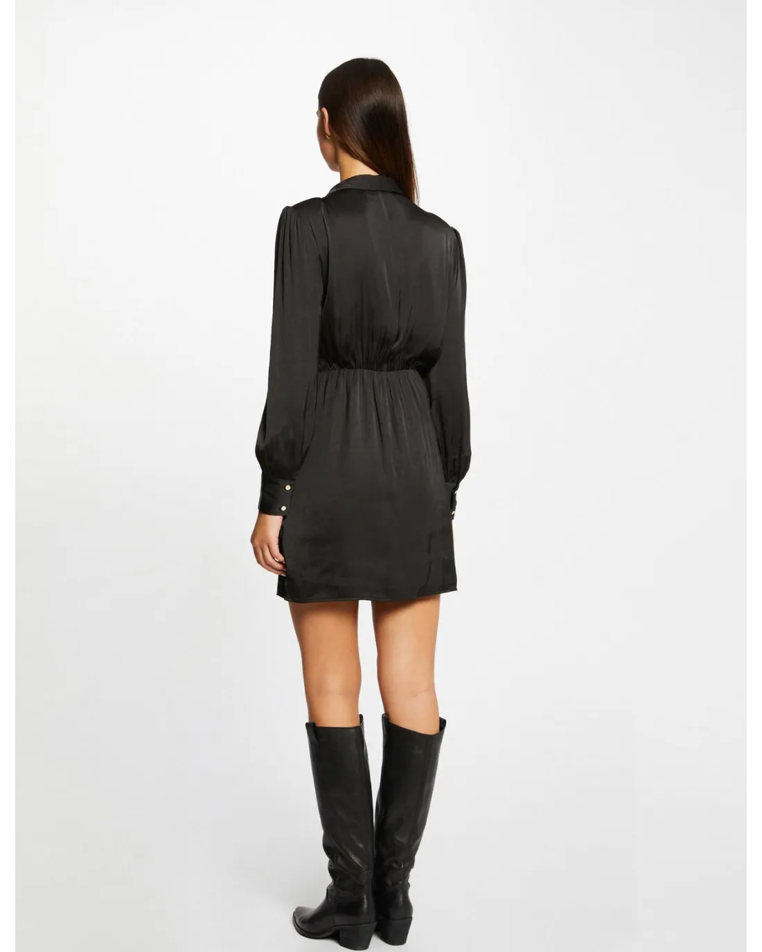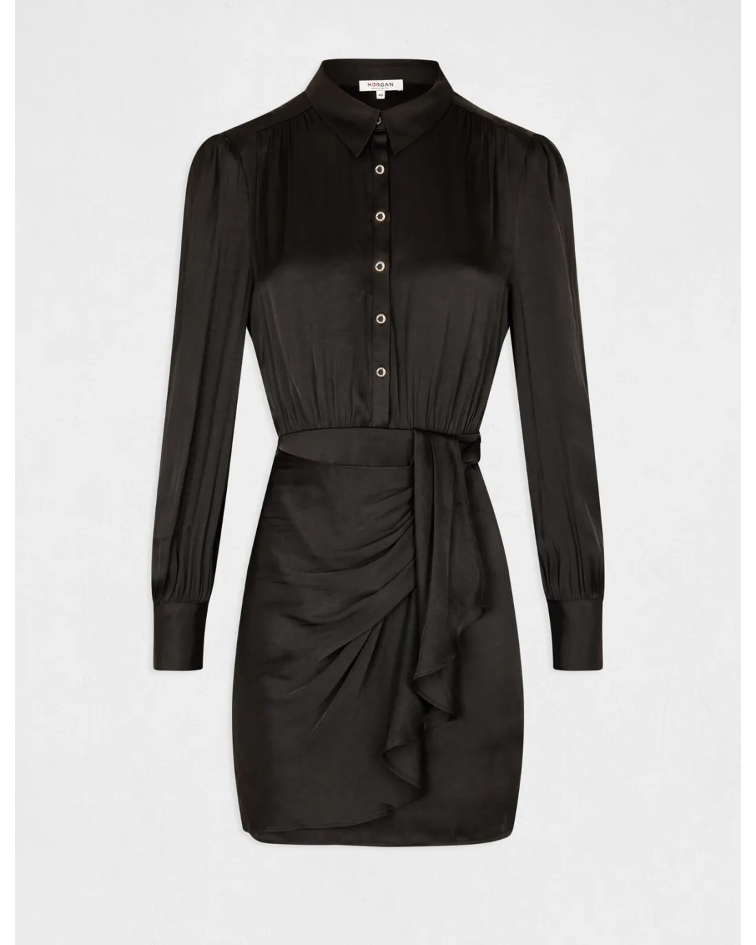 Vestido de largo midi estampado confeccionado en tejido de viscosa ECOVERO con manga corta abullonada, escote en V con cierre de botones centrales.