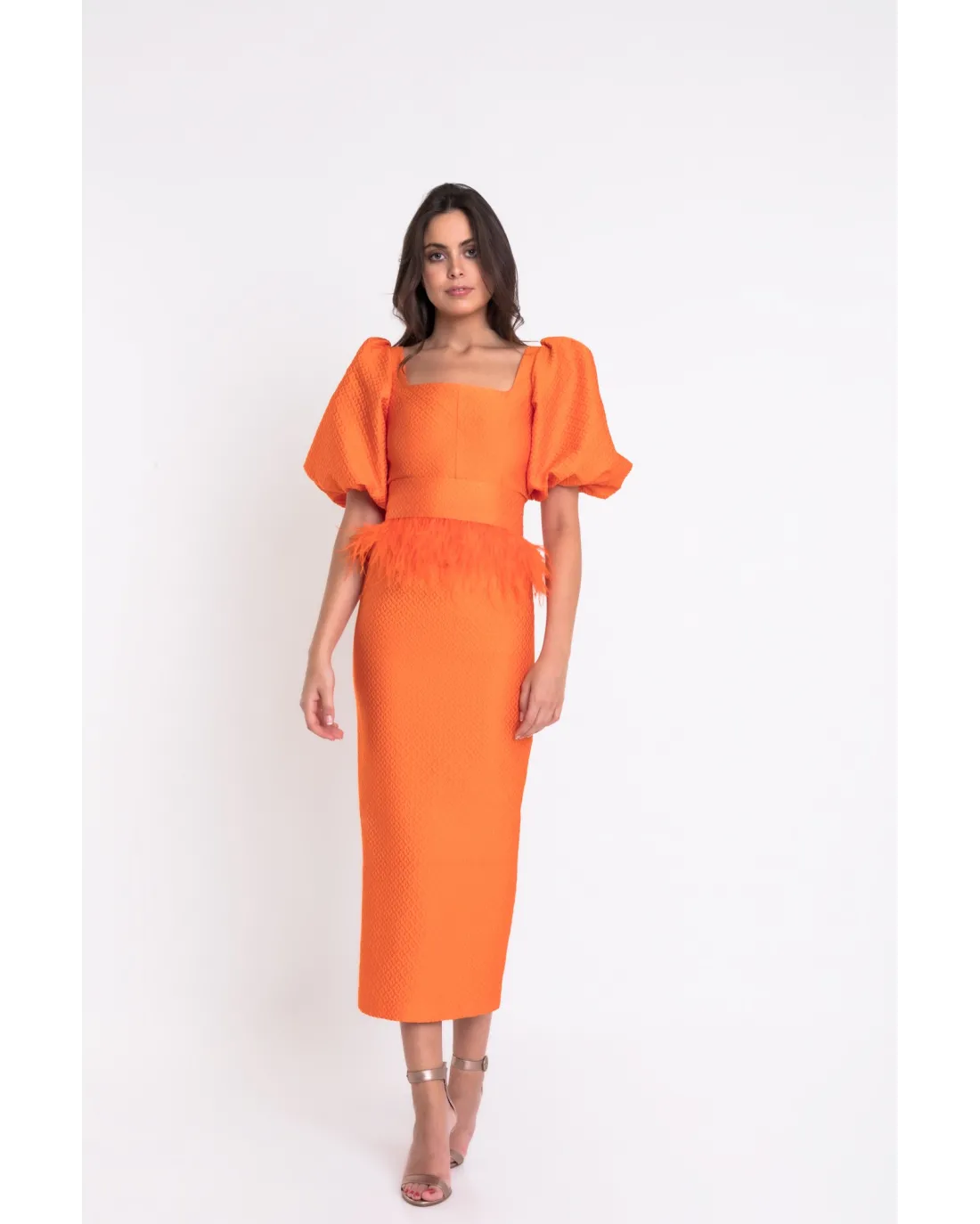 Vestido largo estampado con manga larga acabada en puño para poder dejar manga 3/4, escote efecto cruzado y abertura central. Incluye cinturón al tono con flor.