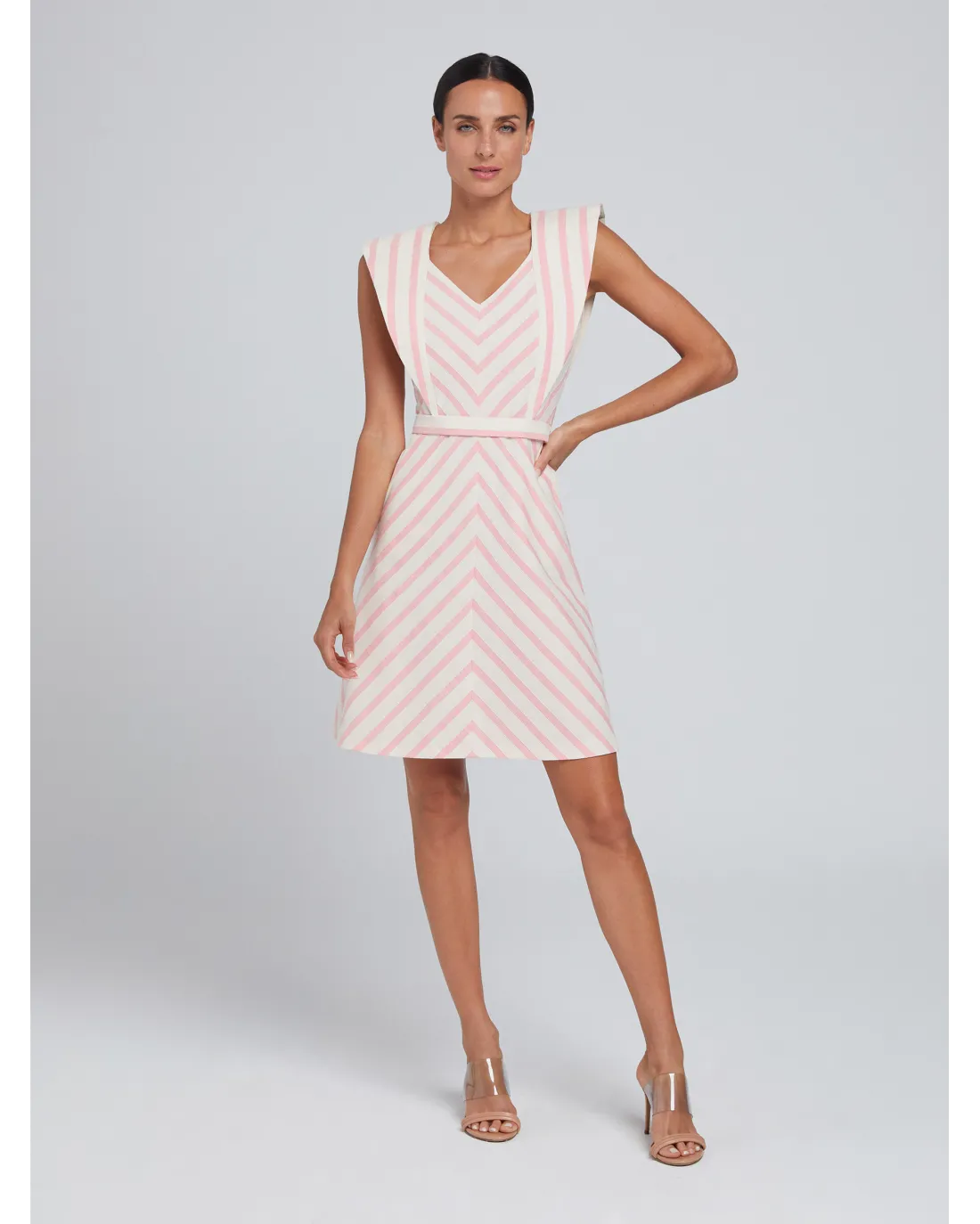 Vestido largo confeccionado con doble tejido, cuerpo de encaje con manga 3/4 semi-transparente, escote en V y aplique de plumas al tono en un lado. Falda larga confeccionada en tejido mikado con bolsillos laterales y cinturón al tono. Cierre de cremallera trasera invisible.