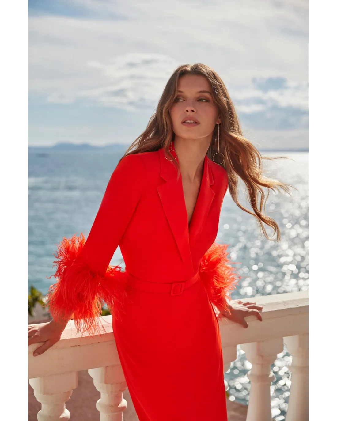 Vestido de largo midi confeccionado en gasa con tonalidades tierra con cuello redondo, manga 3/4 con capelina y falda evasé. La espalda cierra con cremallera invisible. Cinturón no incluido, incluye cinta al tono del vestido.