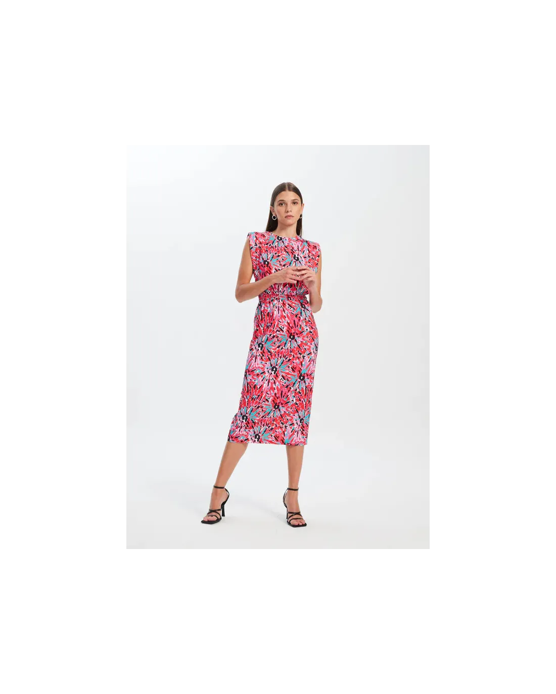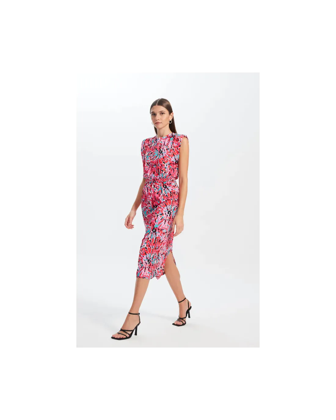 Camisa de manga corta con mangas abullonadas, escote redondo y espalda descubierta con cintas cruzadas.